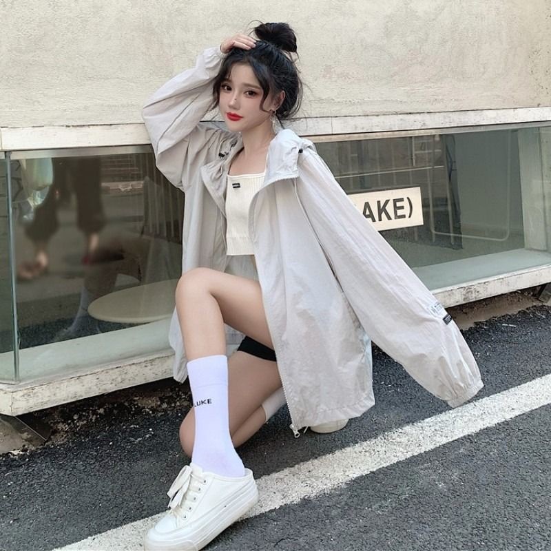 White Hooded Sun Protection Clothing Women's Thin 2022 New Breathable Sun Protection Clothing Loose Summer Coat plus size Ins Trendy