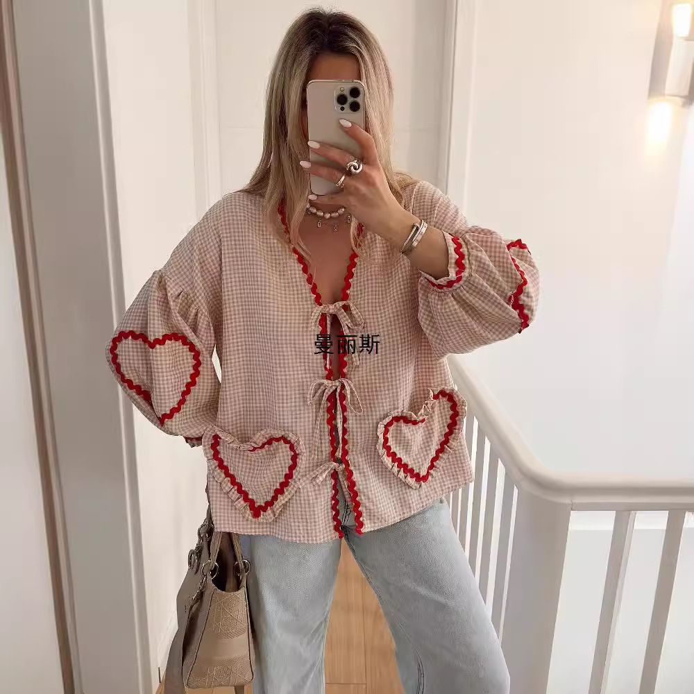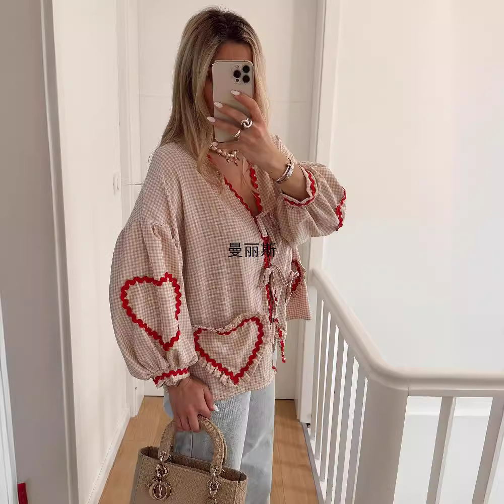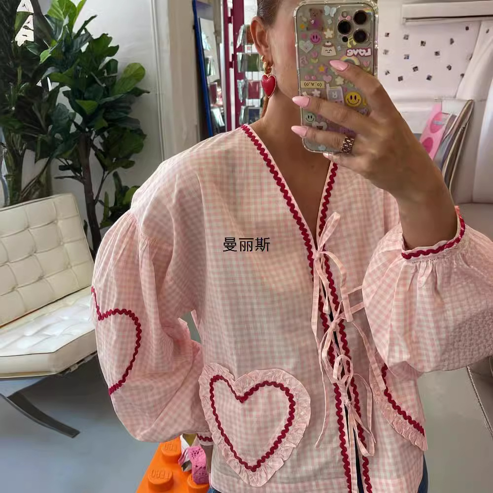 | nameOriginal | European and American style cross-border wholesale independent station Amazon supply 2024 spring and summer new check love webbing shirt |