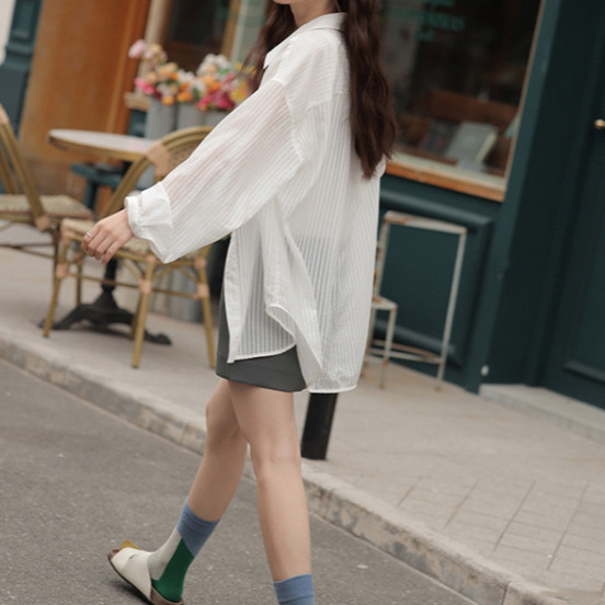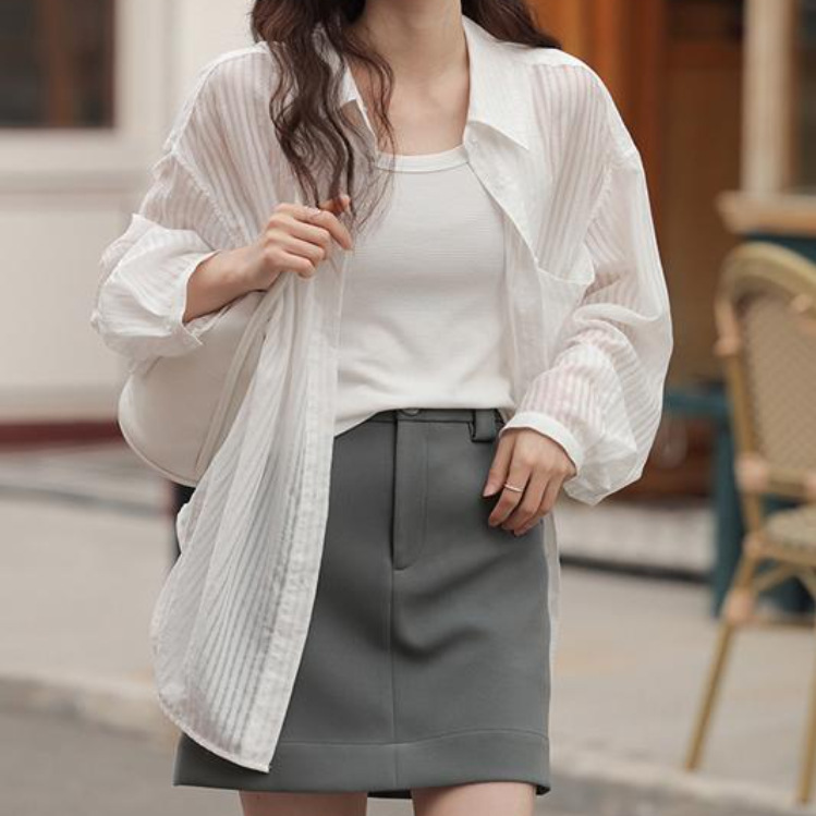 | nameOriginal | Lightweight Breathable Texture Tencel Striped White Shirt Women's Coat 2024 Summer Women's Loose Top Sunscreen Shirt |
