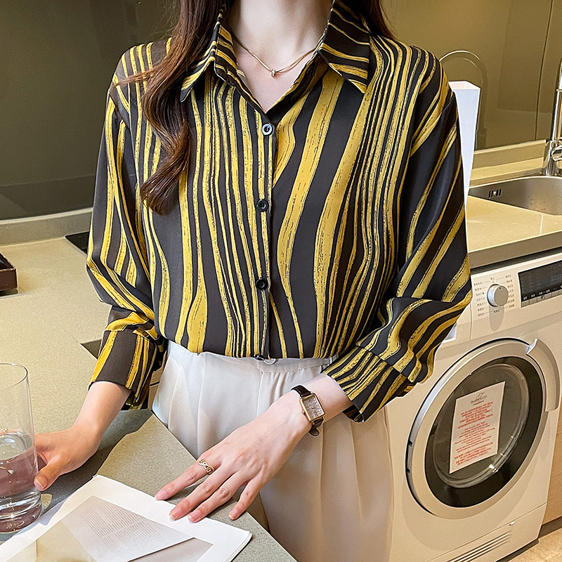 | nameOriginal | Real shot 2023 autumn new printed striped long sleeve all-match white chiffon shirt for women |