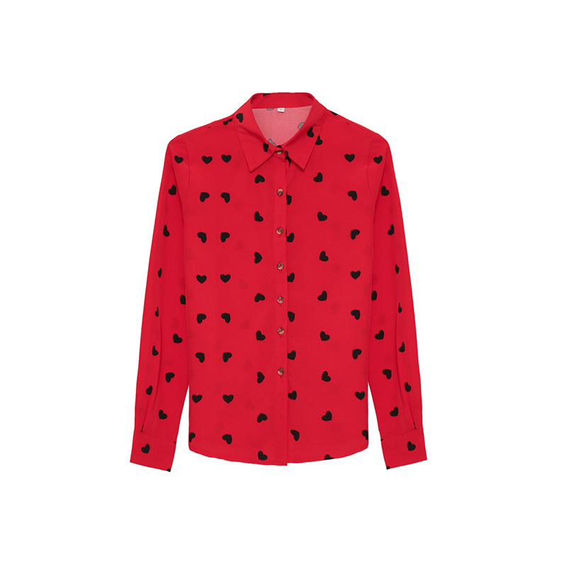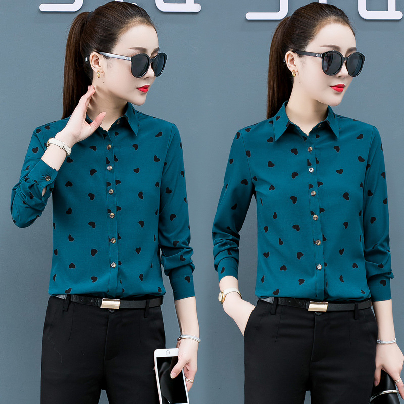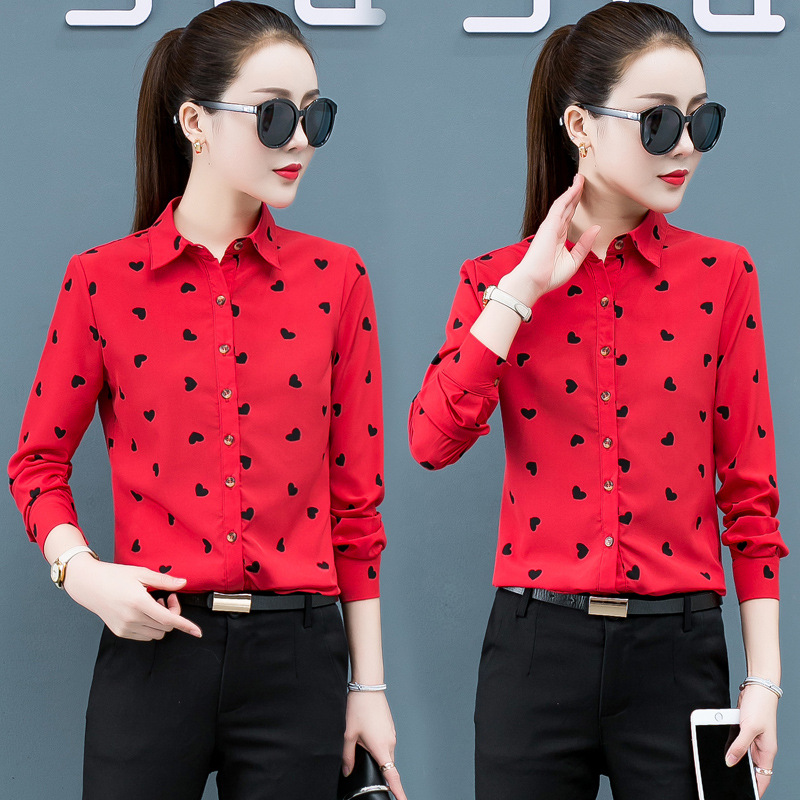 Spring and Autumn New printed yellow red white shirt women’s long-sleeved chiffon shirt Women’s Korean-style slim fit thin