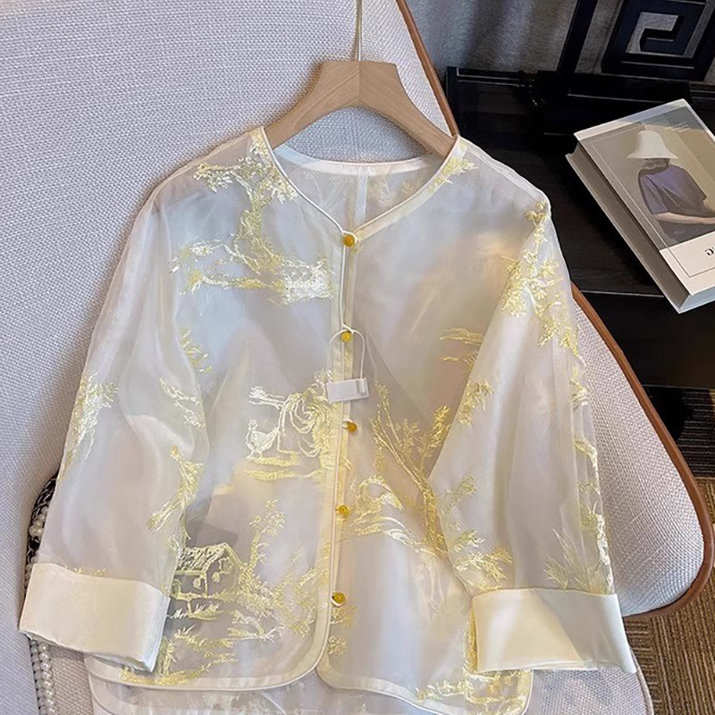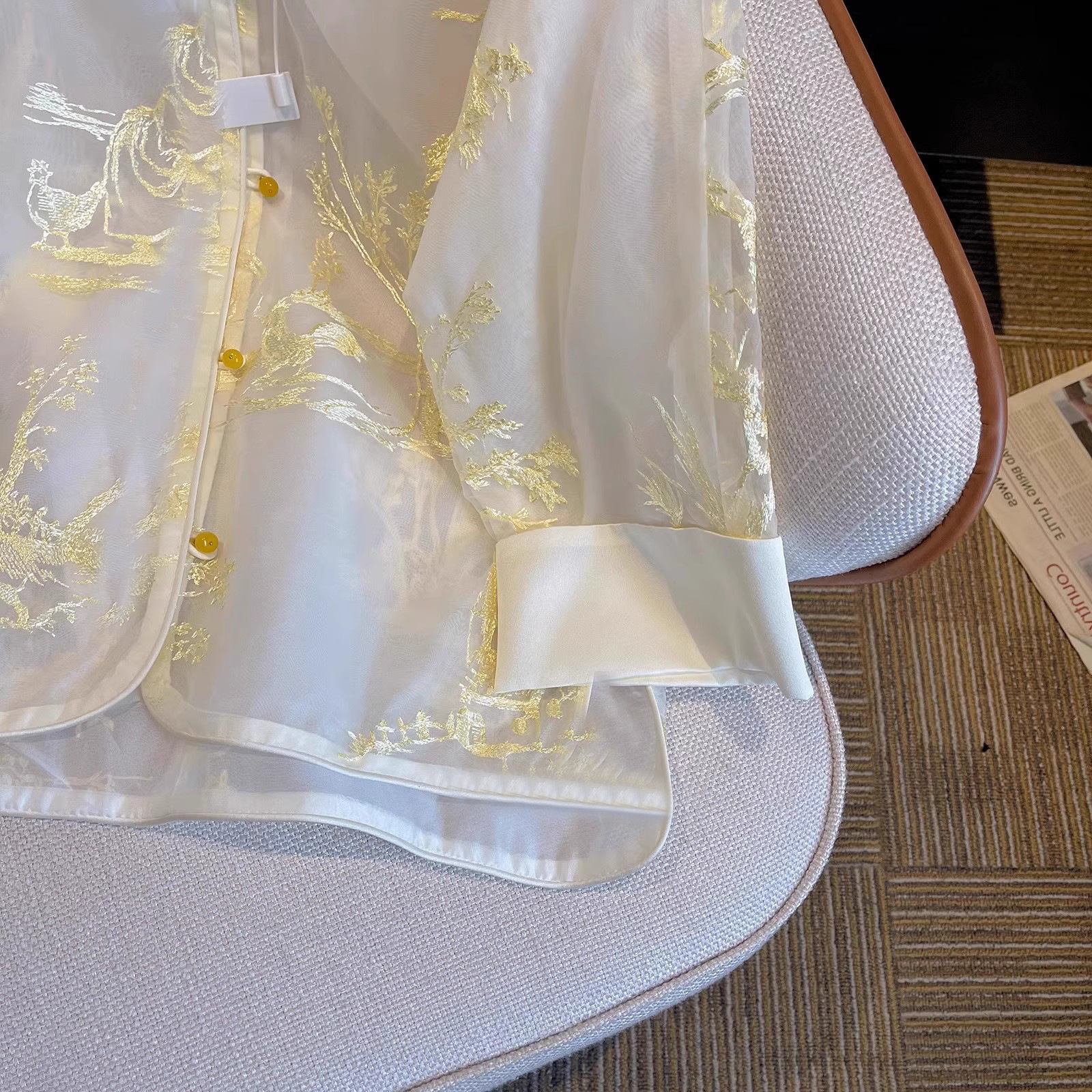 | nameOriginal | Silk Embroidered Shirt Women's New Chinese Style National Style Tang Style High-rise Top Casual Fashion Embroidered Thin Shirt with Buckle |