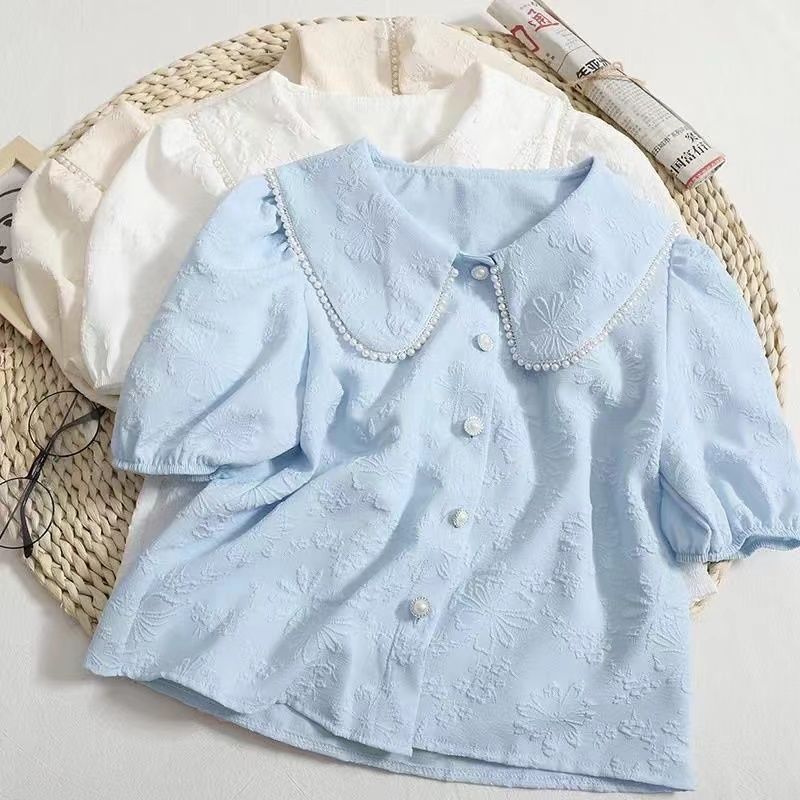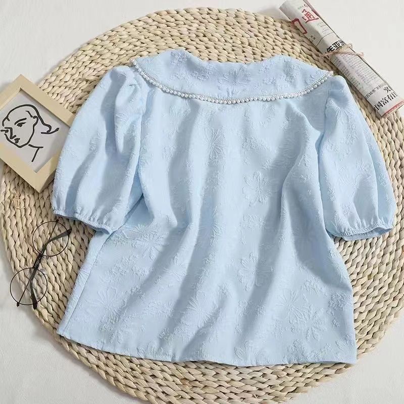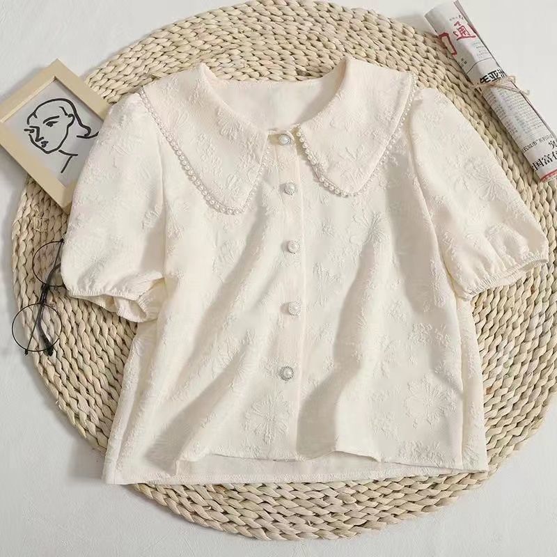 | nameOriginal | Doll Collar Short-sleeved Shirt Women's Summer French Style Chanel Puff Sleeve Shirt Design Niche Summer Short Top |