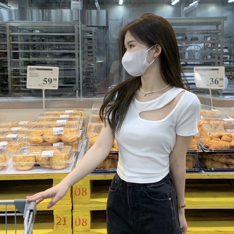 | nameOriginal | 2024 Summer New Style Pure Desire Style Design Sense Hollow-out Slim-fit Short Base Shirt Short-sleeved T-shirt Women's Top |