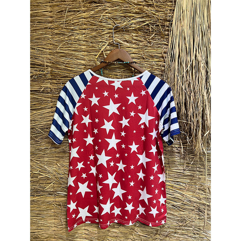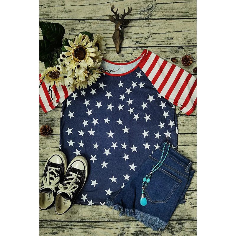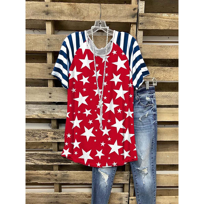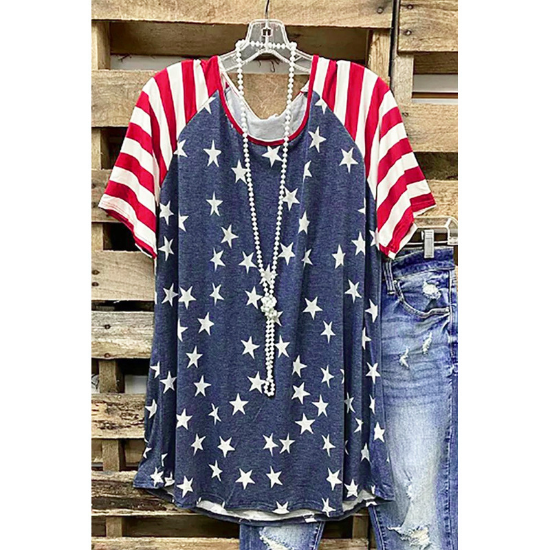 | nameOriginal | A large number of spot cross-border European and American Amazon summer women's independence day striped stitching stars short sleeve t-shirt women |
