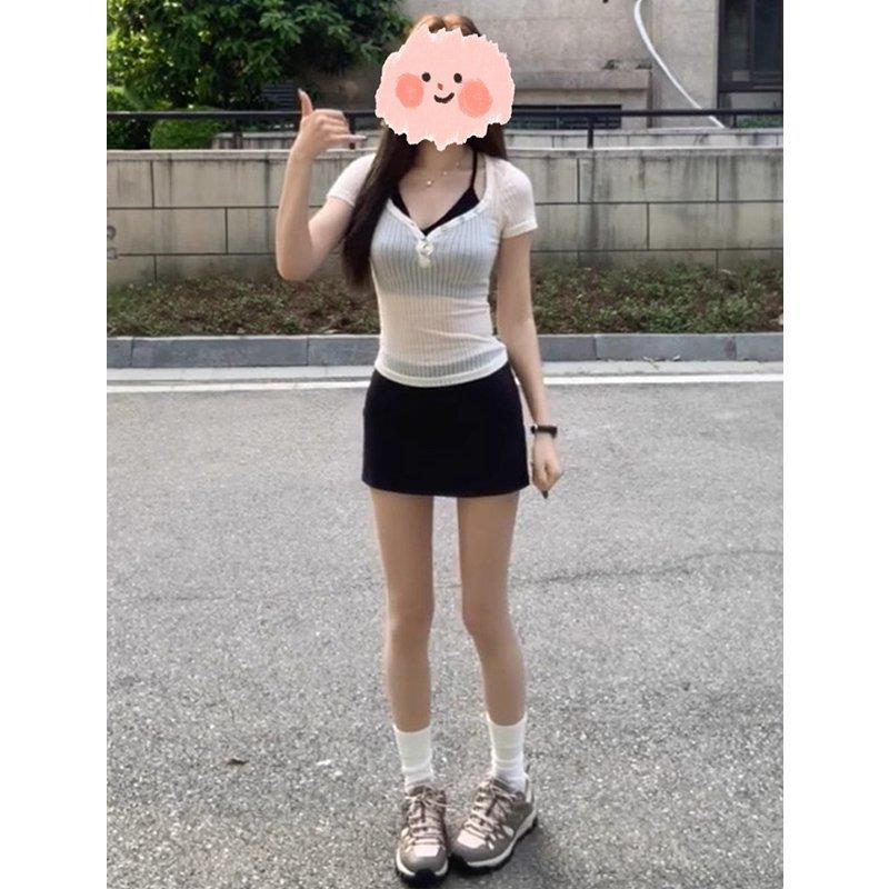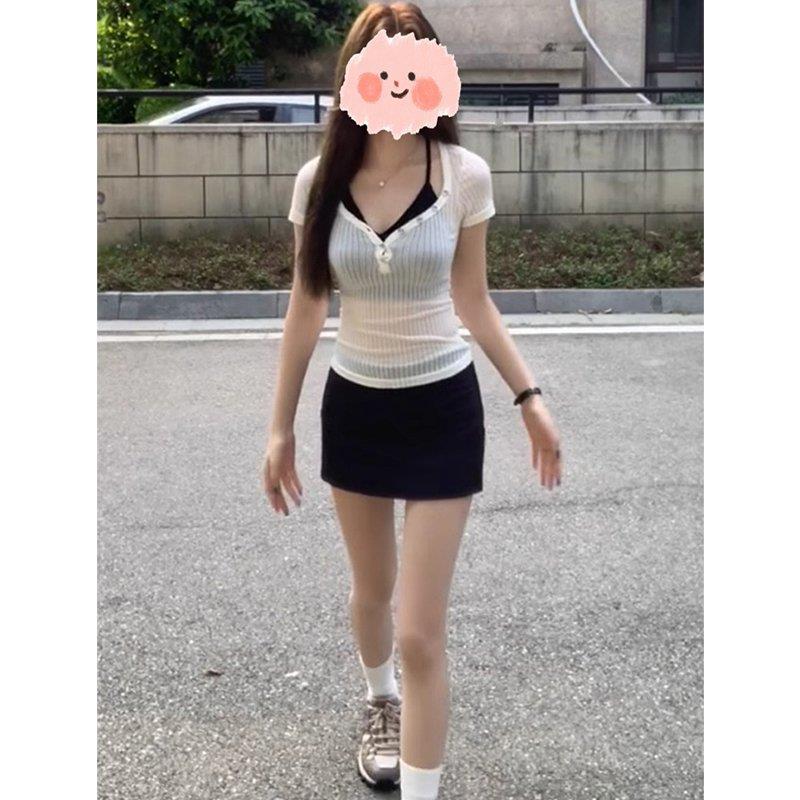 | nameOriginal | American Style Short Sexy Shoulder Short-Sleeved T-Shirt Women's Summer Sweet Spice Girl Slim-Fit Beautiful Chic Tight Pure Desire Top |