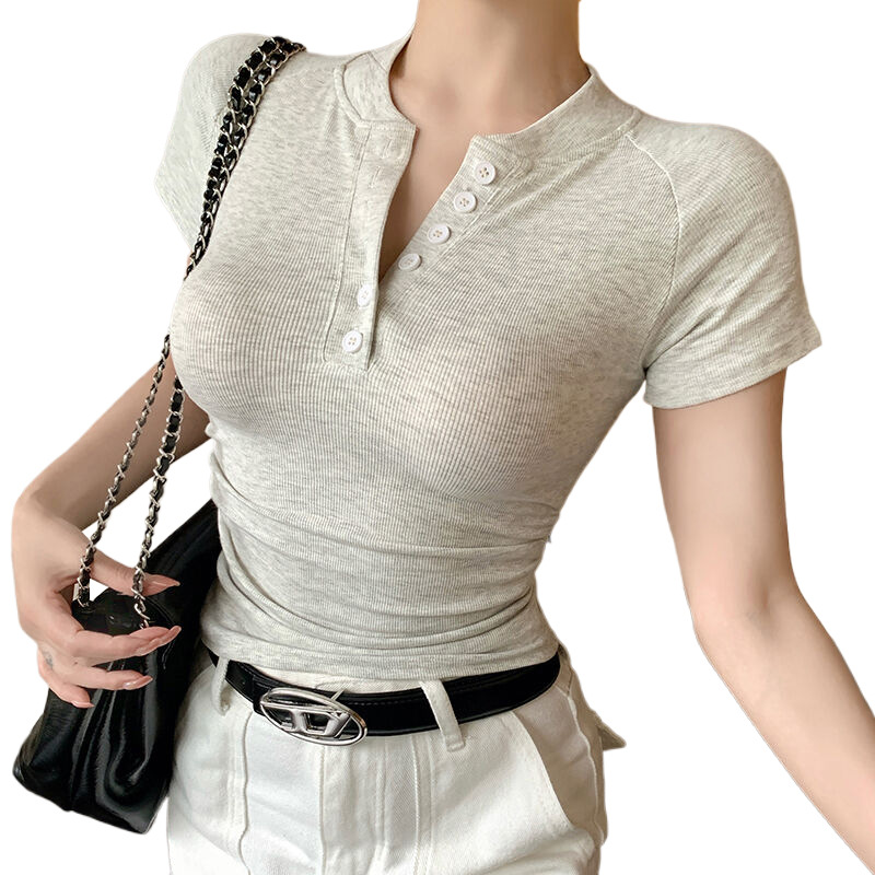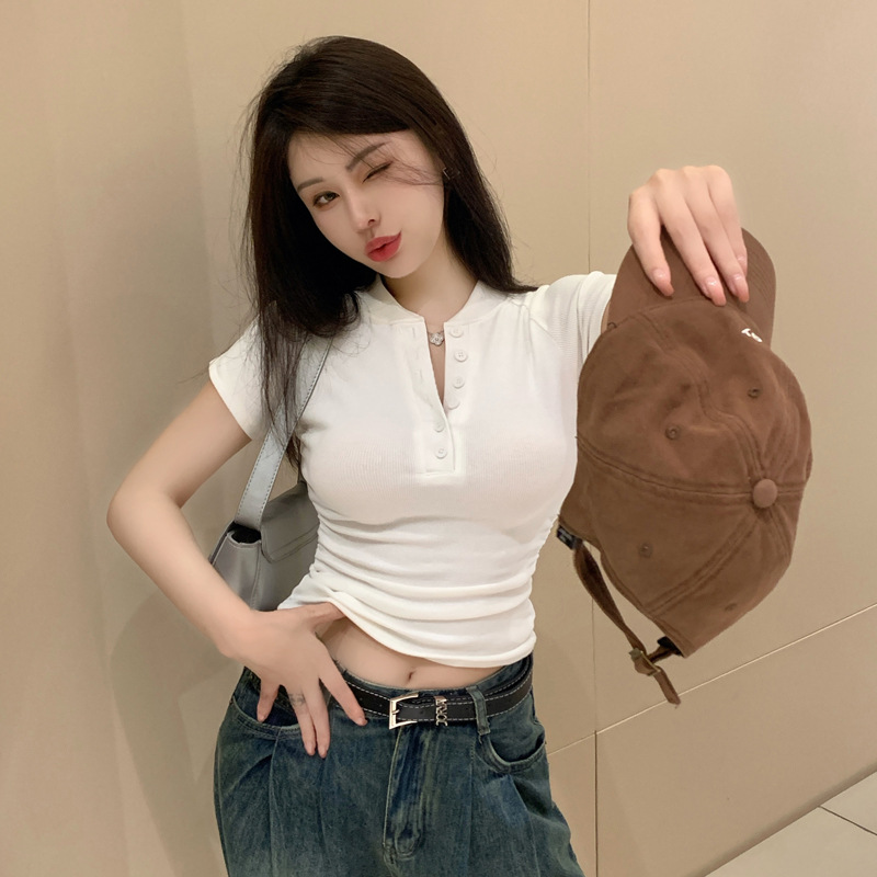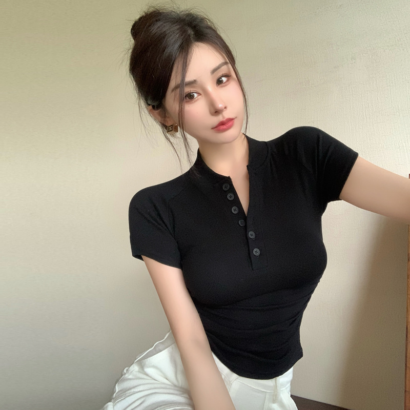 | nameOriginal | 2024 Summer New American Style Spice Girl Style Half-button Collar Short Slim-fit Slimming Threaded Short-sleeved T-shirt Casual Top |