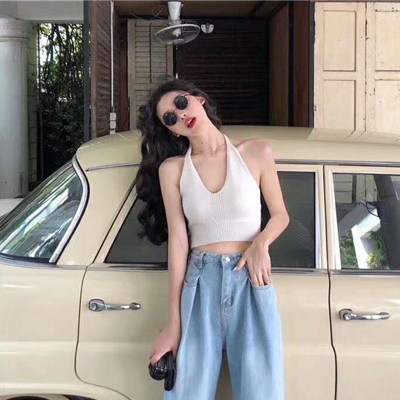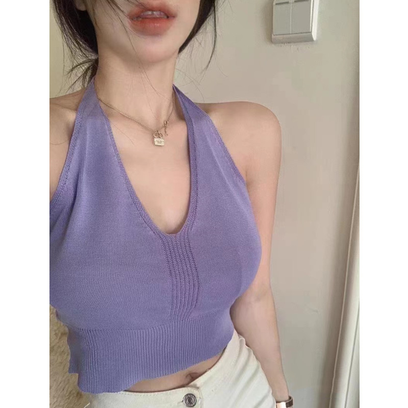 | nameOriginal | 2024 Summer Short V-neck Slim-fit Tight Waist Hanging Neck Base Knitted Camisole Inner Top Women's Outer Wear |