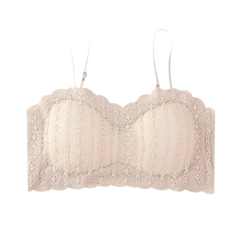 French Style Sexy Lace Traceless Backless Beautiful Back Strapless Women's Wrapped Chest with Chest Pad Vest Adjustable Small Sling Underwear