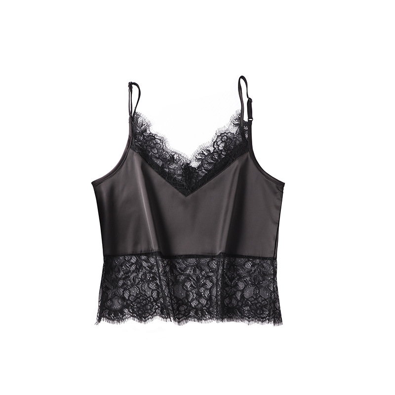 | nameOriginal | Black Eyelash Lace Camisole Women's ins Trendy Outer Wear Beautiful Back Base Shirt Top Sexy Western Style Navel |