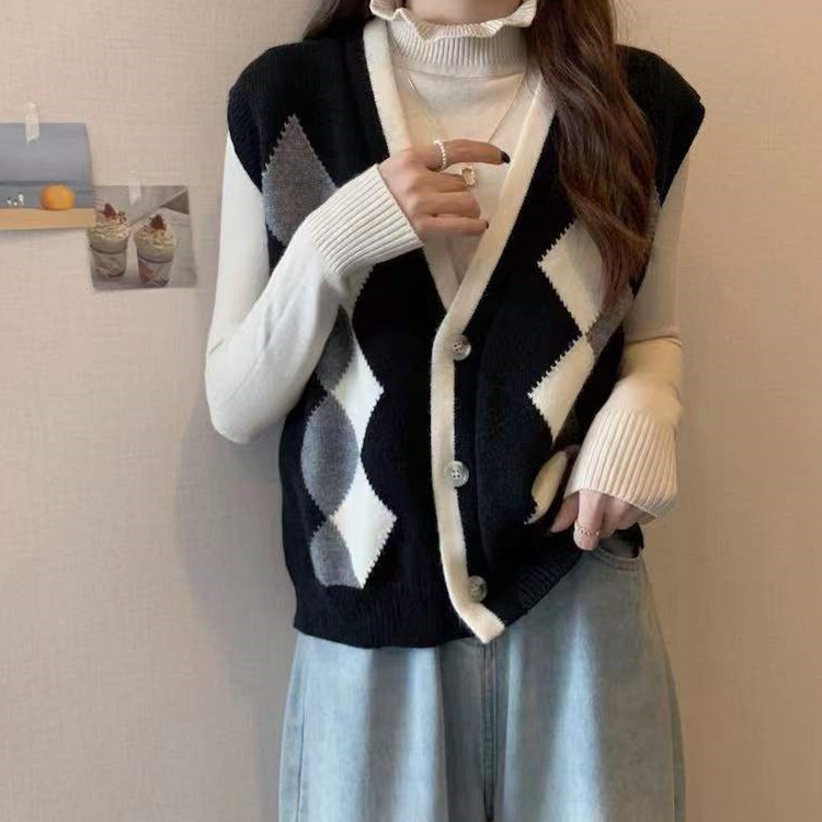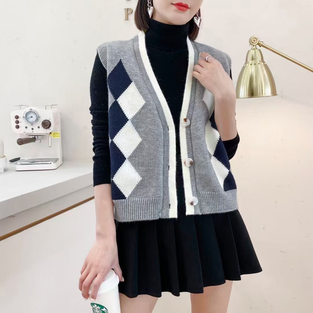 | nameOriginal | Vintage Rhombus Knitted Vest Women's Spring 2023 New V-Neck Sleeveless All-match Fashion Vest Wholesale |