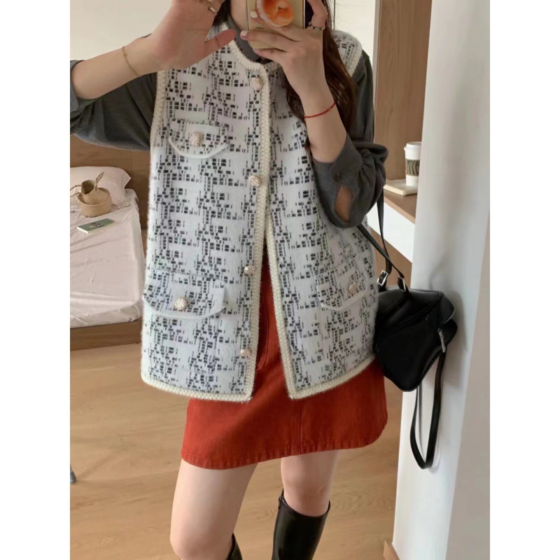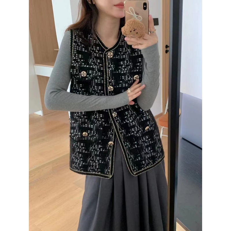 | nameOriginal | Real Shot Houndstooth Western-style Imitation Mink Velvet Vest 2024 Autumn and Winter New High-end Sense Fresh Vest for Women |