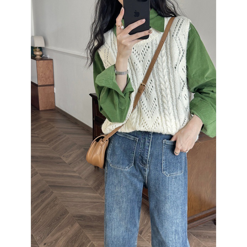 | nameOriginal | White Hollow Twist Knitted Vest Women's 2023 Spring New Stacked Sleeveless Vest Top |