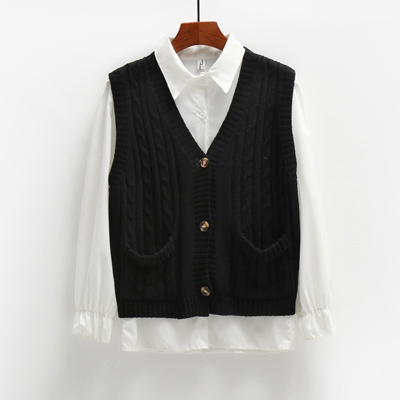 | nameOriginal | Spring and Autumn V-Neck Sweater Vest Cardigan Women's Pocket Korean Style Casual Stacked Knitted Vest Women's Autumn and Winter Outer Wear |