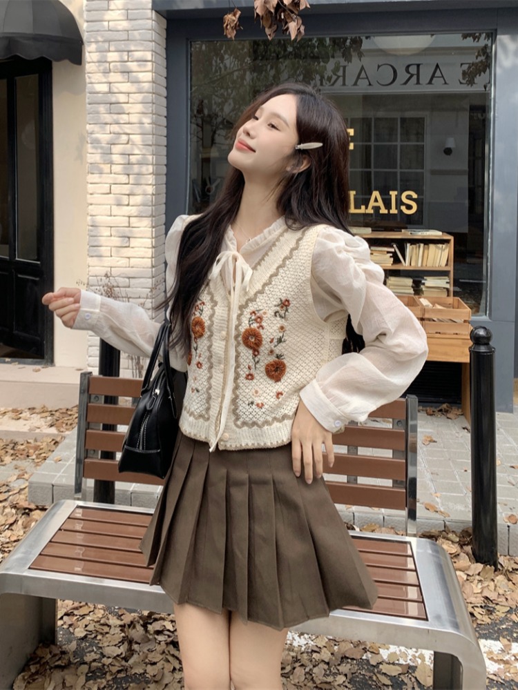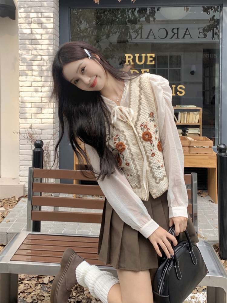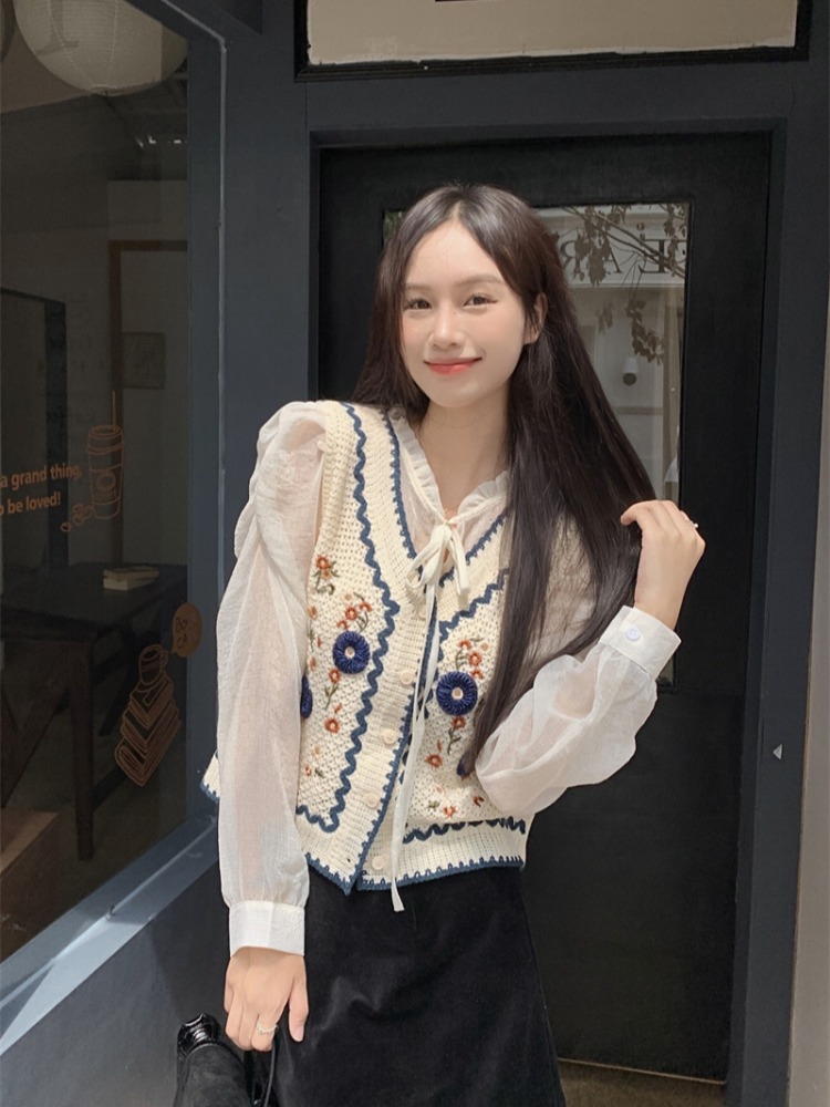 | nameOriginal | Vintage Floral Embroidered V-neck Knitted Vest Women's Autumn Short Sweater Vest Overlap Waistcoat High-end Sense |