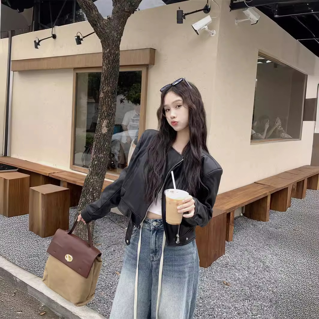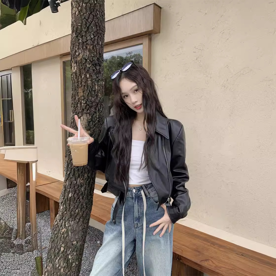 | nameOriginal | Maillard zipper long-sleeved top women's autumn and winter American retro small short PU leather motorcycle jacket jacket |