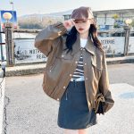 | nameOriginal | Retro cool style brown PU leather coat for women Spring 2024 New Fashion casual Hong Kong style loose all-match coat |
