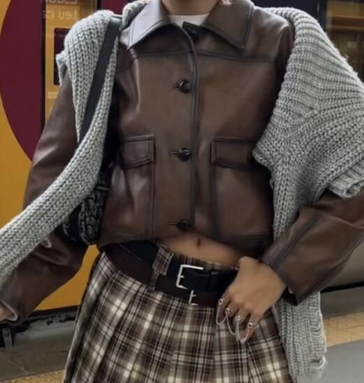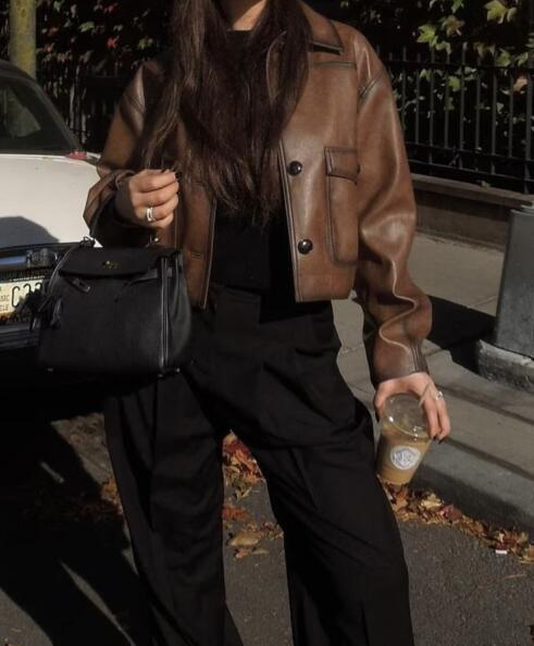 | nameOriginal | American Style Spice Girl Retro Brown Short Leather Coat Women's Autumn New Lapel Loose Slim Jacket Coat |