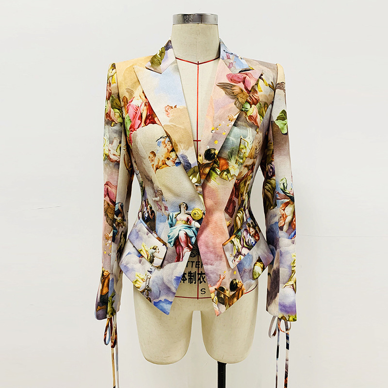 | nameOriginal | Spot 2024 New European and American Fashion Tie Rope Slim-fit Tight Waist Retro Renaissance Angel Print Suit Jacket |