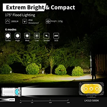 The WUBEN X2 is a compact and stylish outdoor flashlight that is both easy to carry and incredibly bright. It features 3 high-quality LED lights that provide a wide-angle floodlighting effect, with an impressive 2,500 lumens of brightness that can turn night into day. The flashlight also has 6 different lighting modes, including Turbo, High, Med, Low, Strobe, and SOS, with a memory function that allows you to customize the brightness of the regular modes.