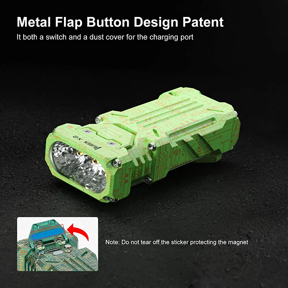 The WUBEN X2 also features a unique metal flap button that serves as both a switch and a dust cover for the charging port, making it more convenient and durable than traditional fixed button switches. The flashlight is also IP68 waterproof and comes with a charging lanyard that doubles as a carrying strap.
