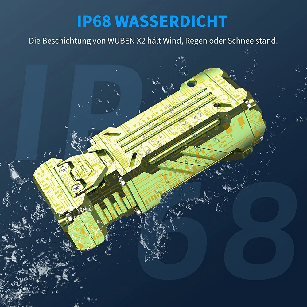 WUBEN X2 Pocket Flashlight – 1,800 Lumens, 6 Light Modes, Rechargeable. Ideal for Outdoor Activities, EDC, and Emergencies.