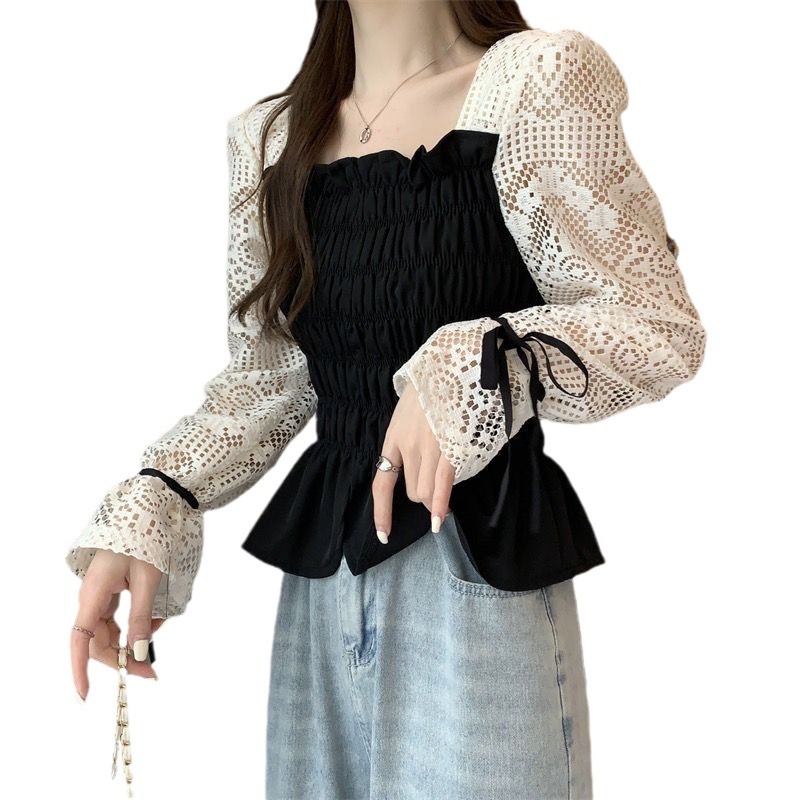 | nameOriginal | French Retro Slimming Base Shirt Hollow Clavicle Western Style Lace Stitching Fake Two-piece Top Women's Slim-fit Shirt |