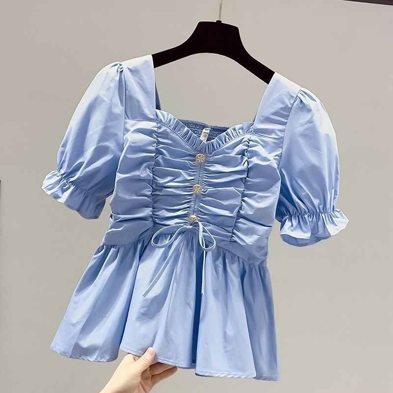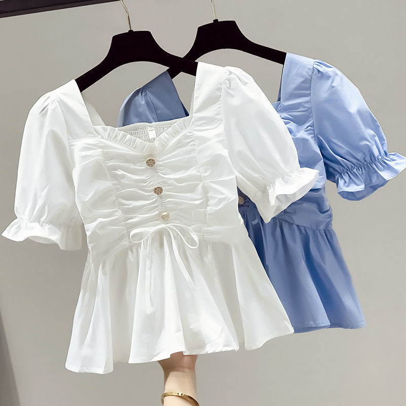 | nameOriginal | Short-sleeved chiffon white shirt women's summer thin 2023 new belly-covering waist small shirt square collar slim top |
