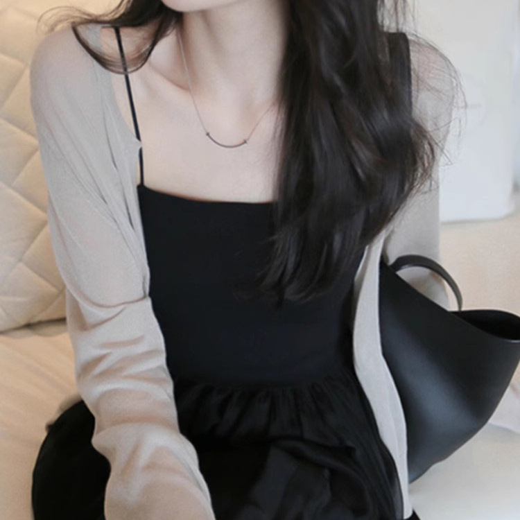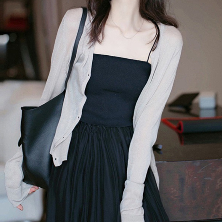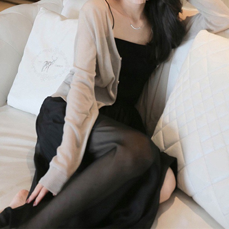 | nameOriginal | V-neck Ice Silk Knitted Sunscreen Cardigan Women's Summer Thin Long-sleeved Sling Outer Tulle Air Conditioning Blouse |