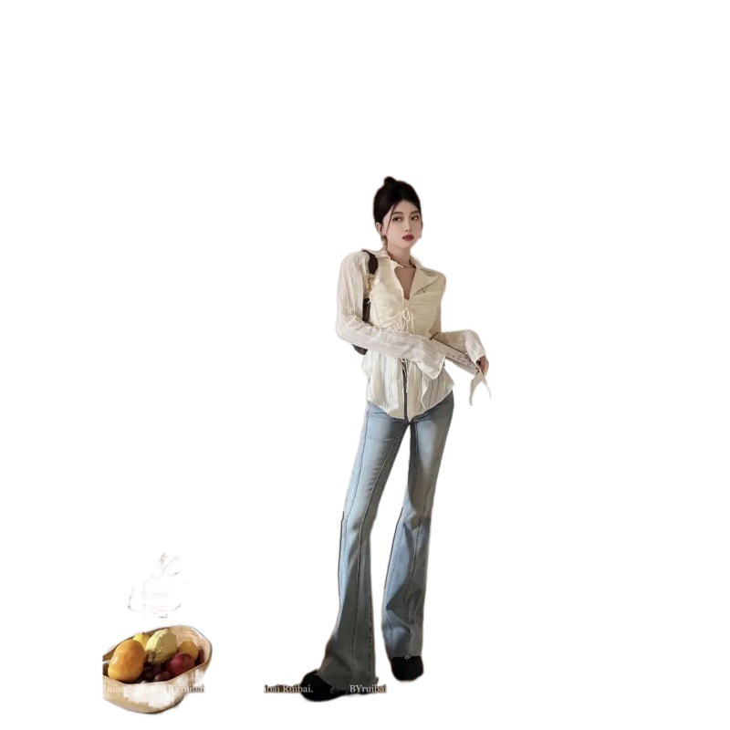 | nameOriginal | apricot Chiffon Sunscreen Shirt Women's Spring and Autumn Slim-fit Long-sleeved Shirt V-neck Irregular Design Niche Top |