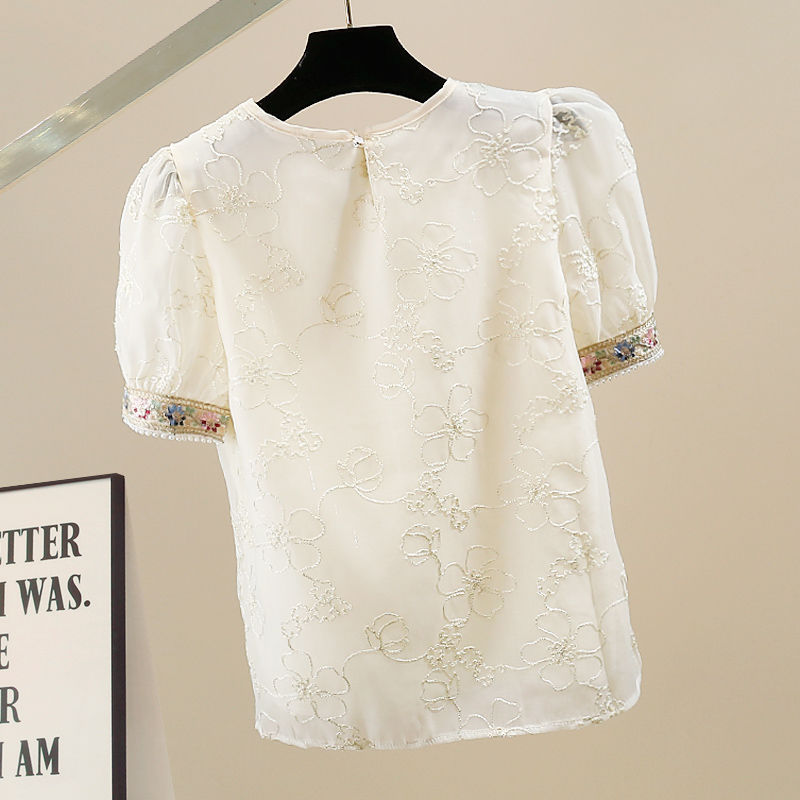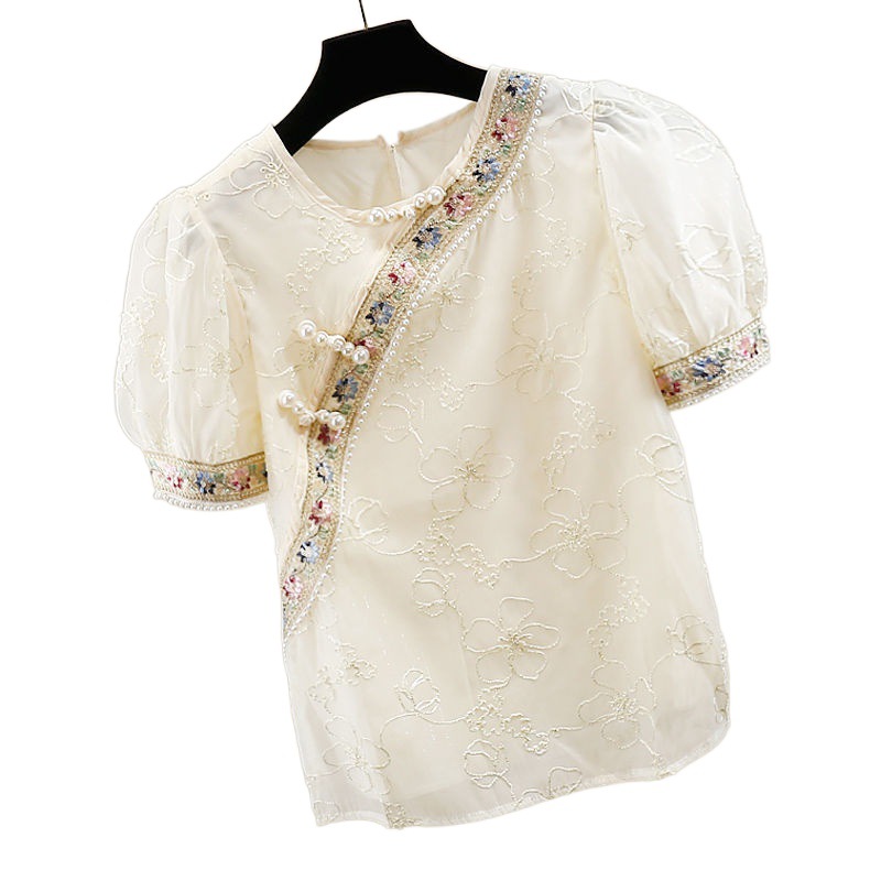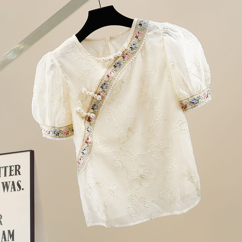 | nameOriginal | Chinese Style Short Sleeve Chiffon Embroidered Shirt Summer 2024 New French Style National Style Design Small Shirt Beautiful Top |