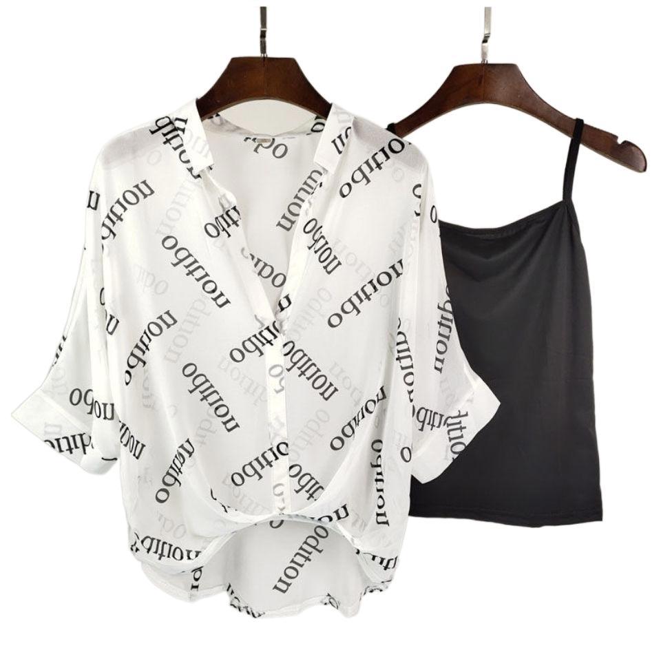 | nameOriginal | 2021 New Fashion Sling Shirt Two-piece Suit Women's Korean-style Loose Stylish Age-reducing Short-sleeved Chiffon Shirt Top |