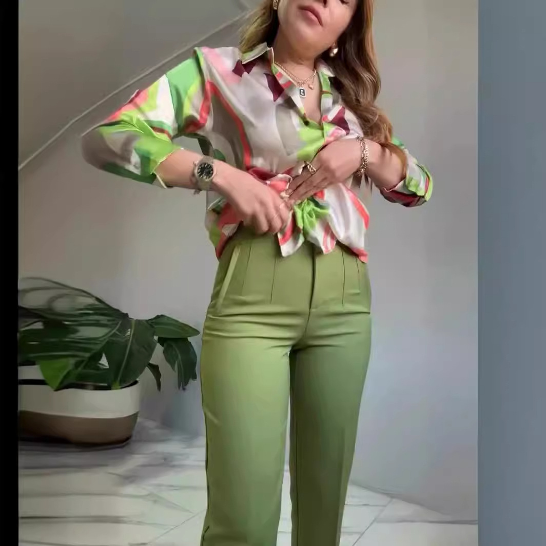 | nameOriginal | Amazon 2024 Summer European and American New Printed Top Slim-fit Trousers Two-piece Fashion Women's Clothing |