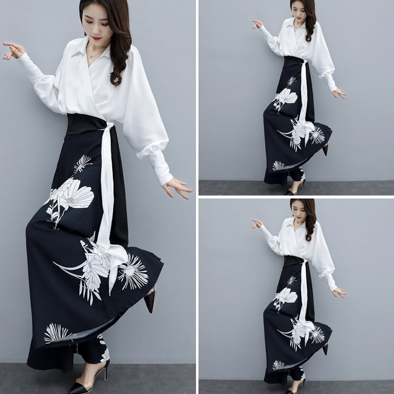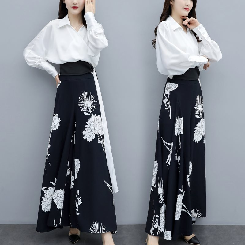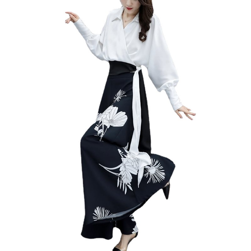 | nameOriginal | 2024 Spring and Autumn Elegant Ladies Printed Wide Leg Pants Shirt Suit Women's Western Style Loose Slimming High Waist Two-piece Suit |