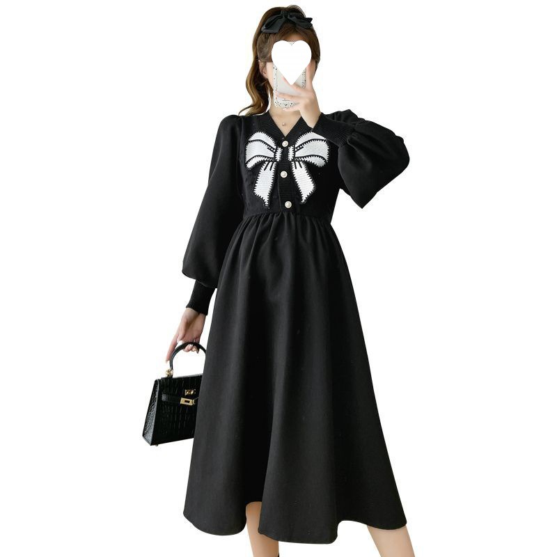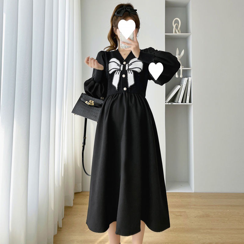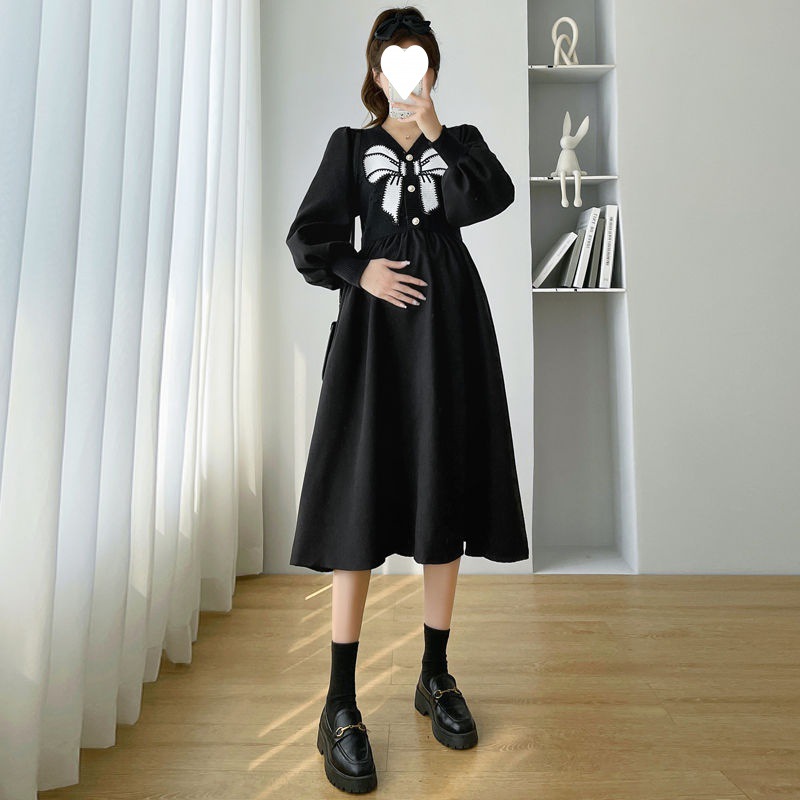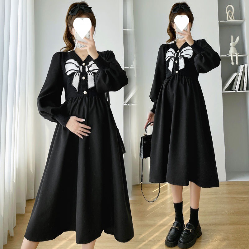 | nameOriginal | Autumn Maternity Dress Fashion suit Internet Popular Autumn and Winter Loose Bow Pregnant Women dress plus size Pregnant Women Base Skirt |