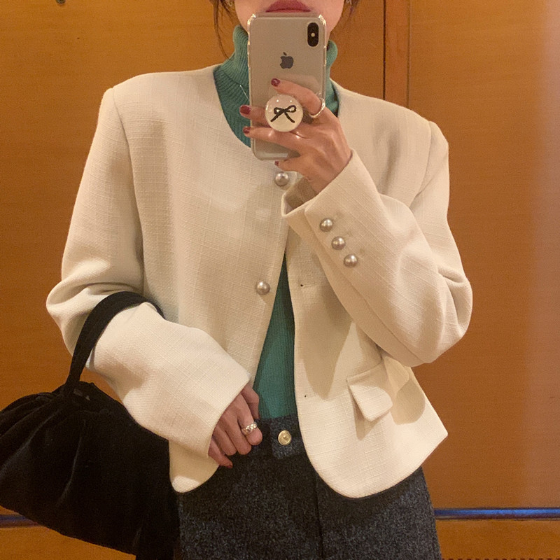 | nameOriginal | French Chanel style elegant round neck single-breasted woolen suit top 2023 autumn and winter short coat for women 3 colors |