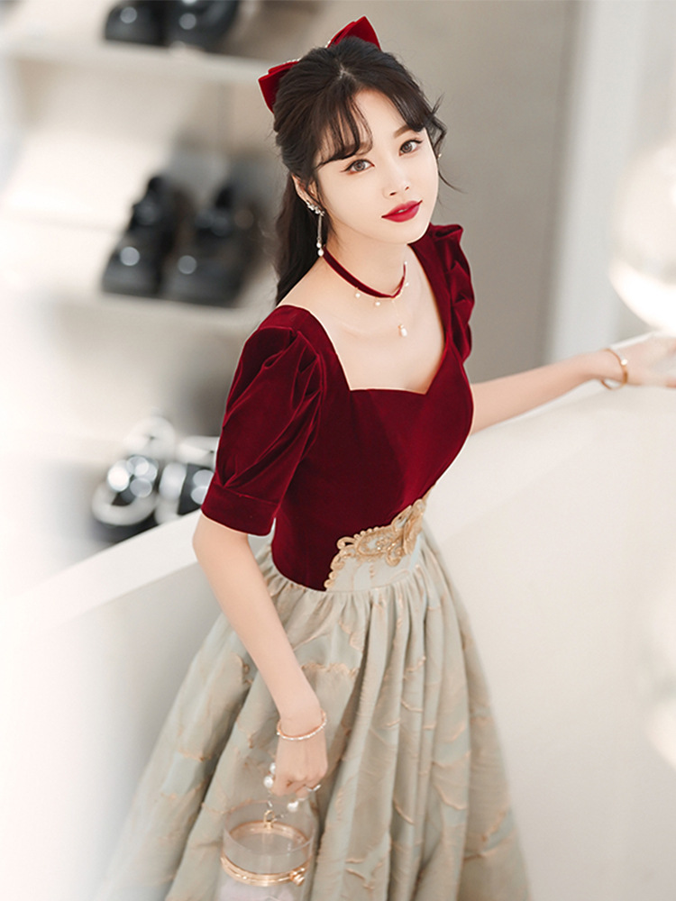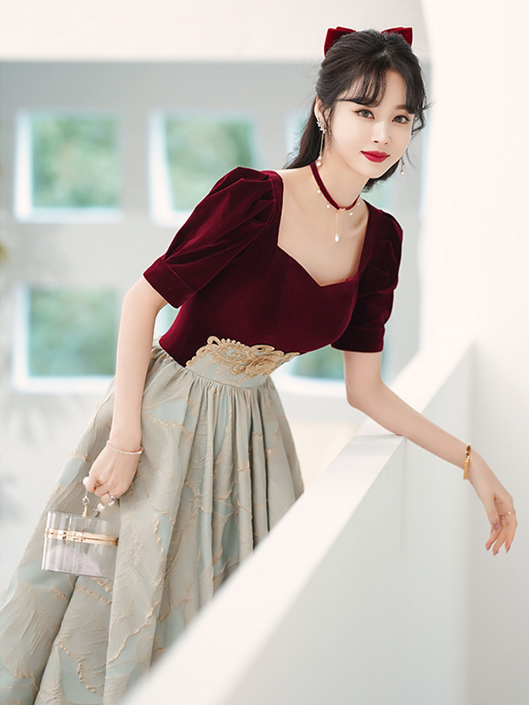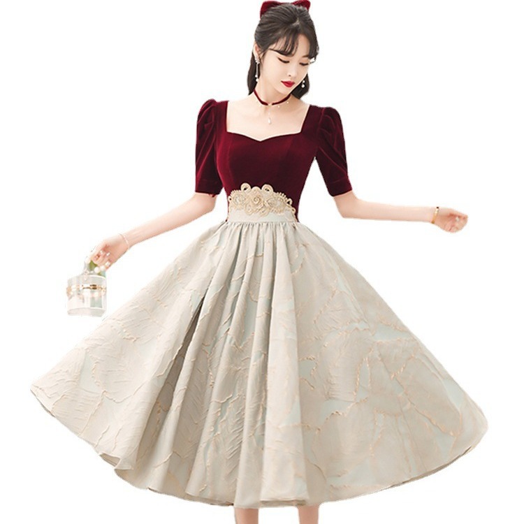 | nameOriginal | Toast Dress Bride Burgundy Engagement Evening Dress Dress Women's 2024 New Style Back Door Banquet Elegant Dress |