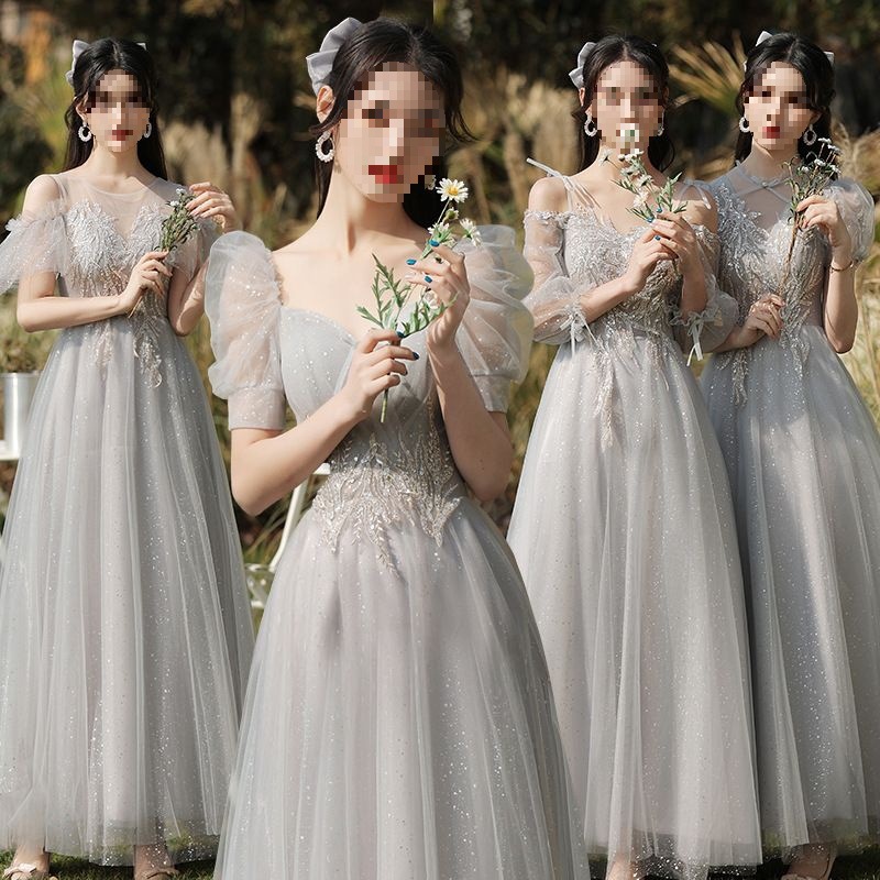 | nameOriginal | Bridesmaid Dress 2022 New Summer Fairy Elegant Bridesmaid Dress Sisters Dress Women's Grey Slimming Flesh Covering Girlfriend Dress |