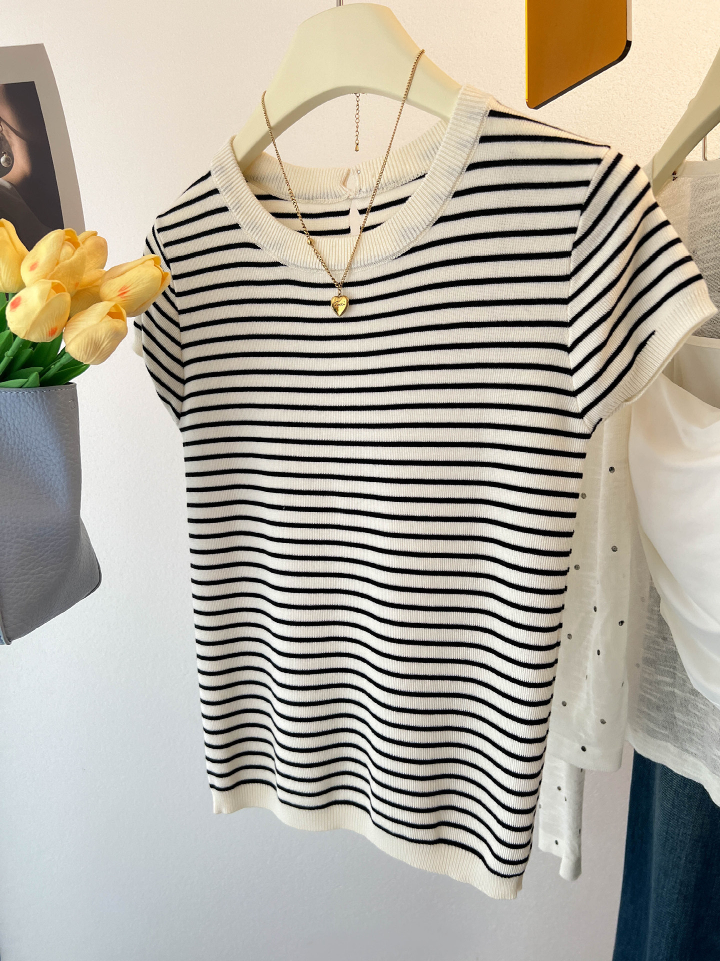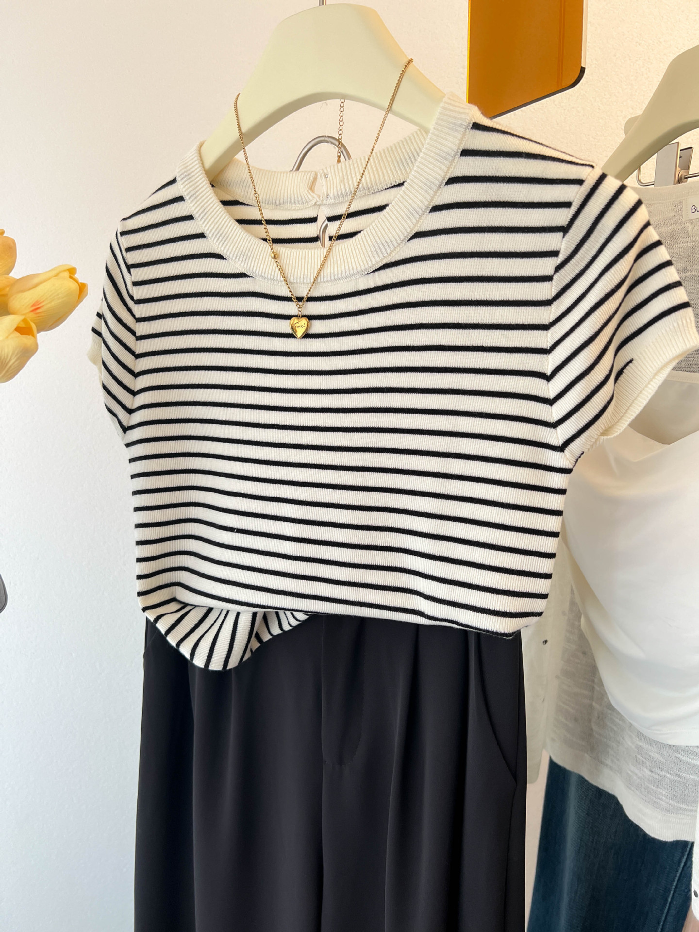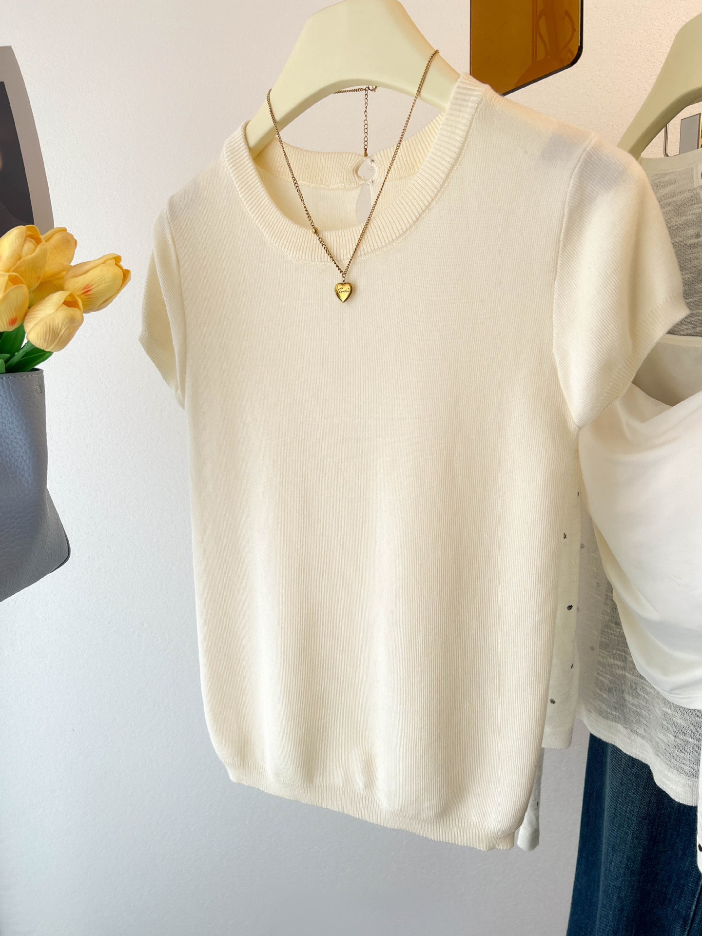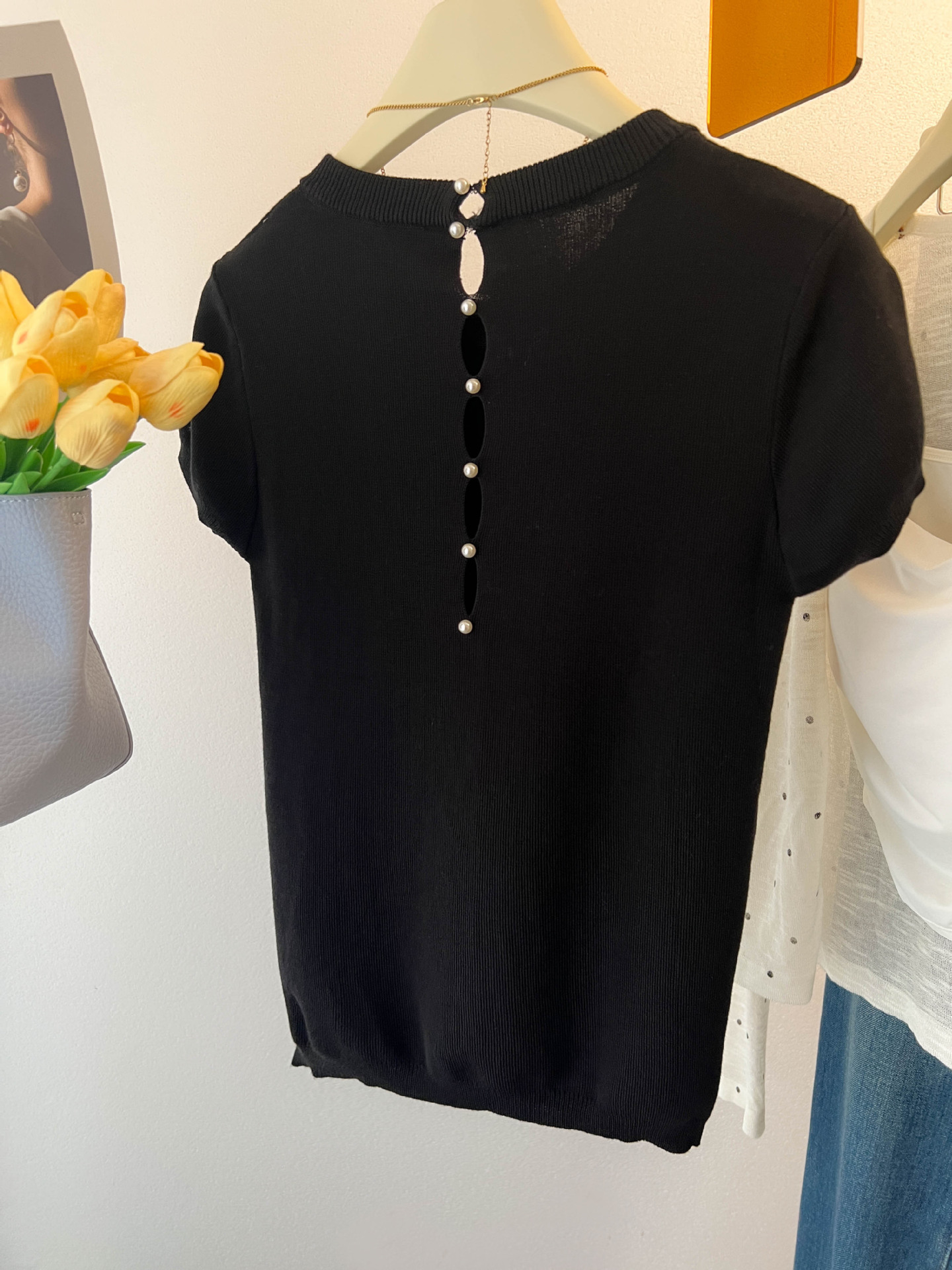 | nameOriginal | Hangzhou Sijiqing High-end Women's Wear Guangzhou Thirteen Lines Back Hollow Short-sleeved Knitted Baby light blue Top Summer |