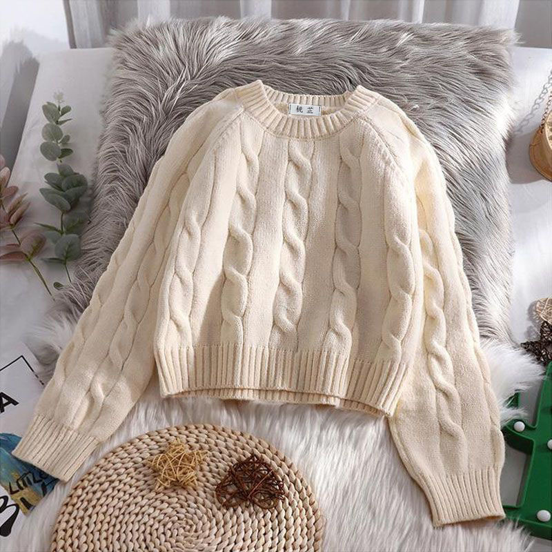 | nameOriginal | Japanese Style Short Sweater Women's Pullover 2024 Autumn New Loose Western Style Twist High Waist Sweater Top for Outer Wear |