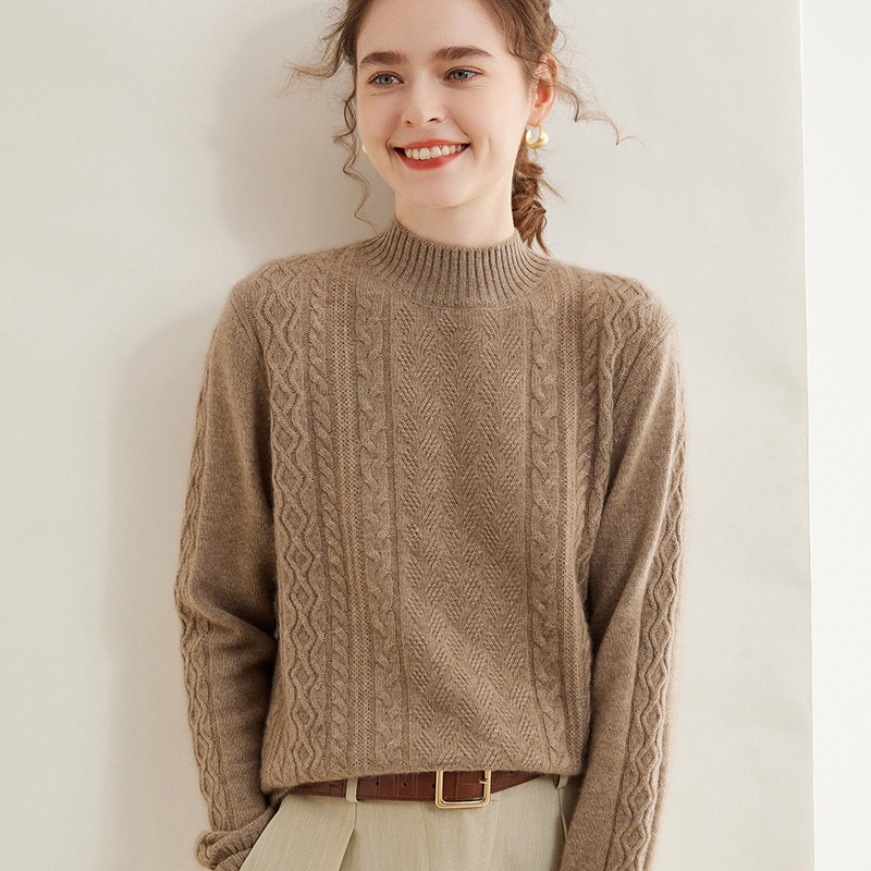 | nameOriginal | Autumn and Winter new pullover half turtleneck cashmere sweater women's thick loose twist sweater skin-friendly warm knitted bottoming shirt |