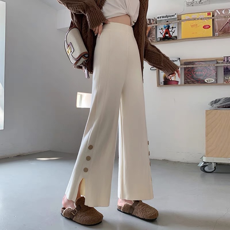 | nameOriginal | 2024 Autumn and Winter New High Waist Slimming Dipped Knitted Wide Leg Pants Casual Straight Tube Split Pants |
