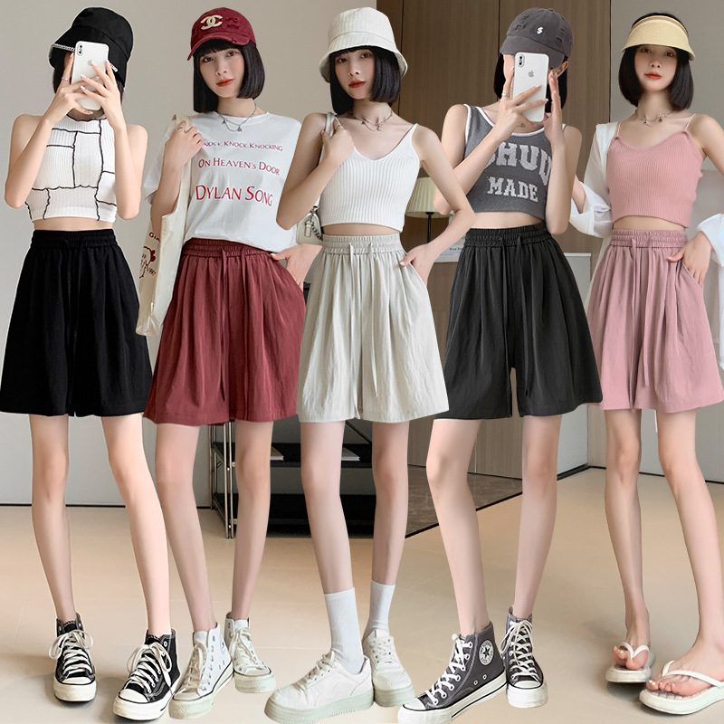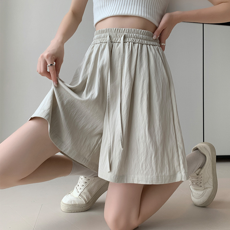 | nameOriginal | Real Shot Summer Ice Silk Texture Shorts Women's High Waist Thin Loose Straight Pleated Cool Casual Pants |