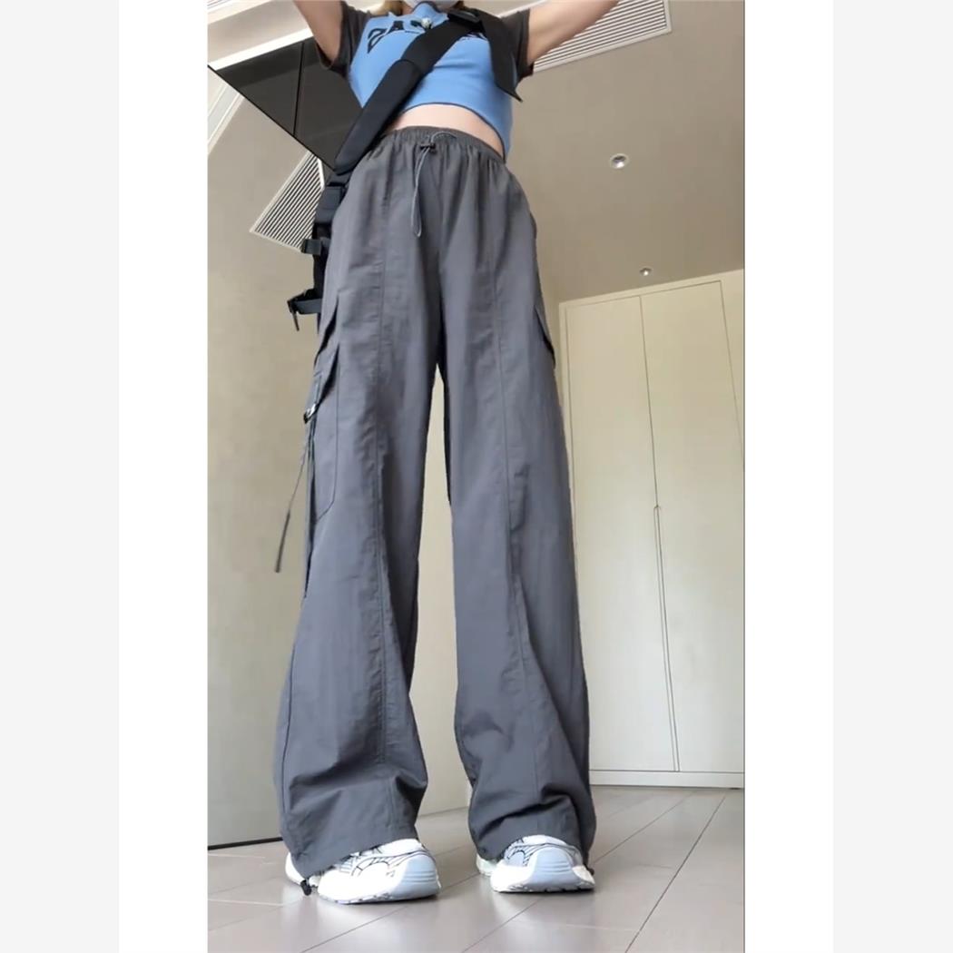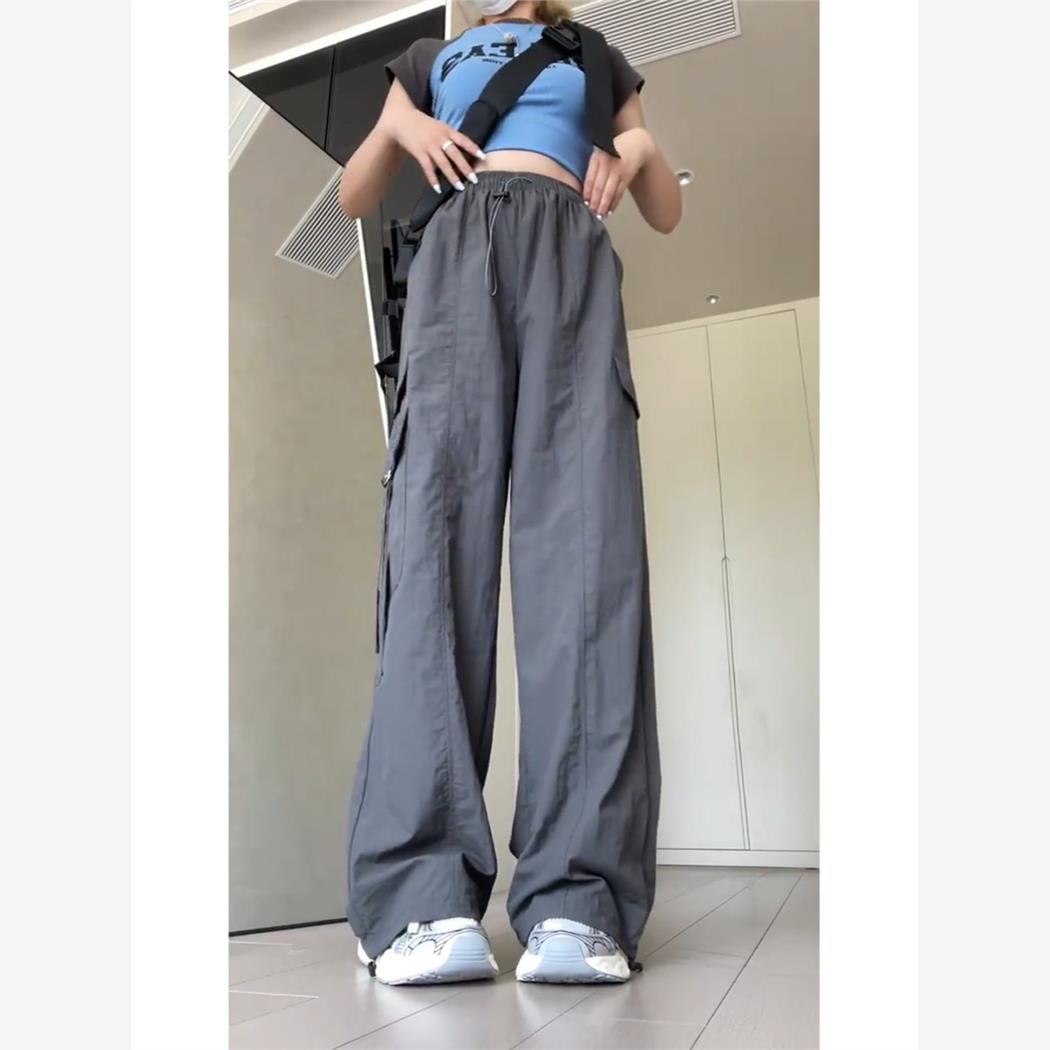 | nameOriginal | American Style Overalls Women's Summer Thin Loose Straight Short Quick-drying Wide-leg Pants Casual Grey Sports Pants |