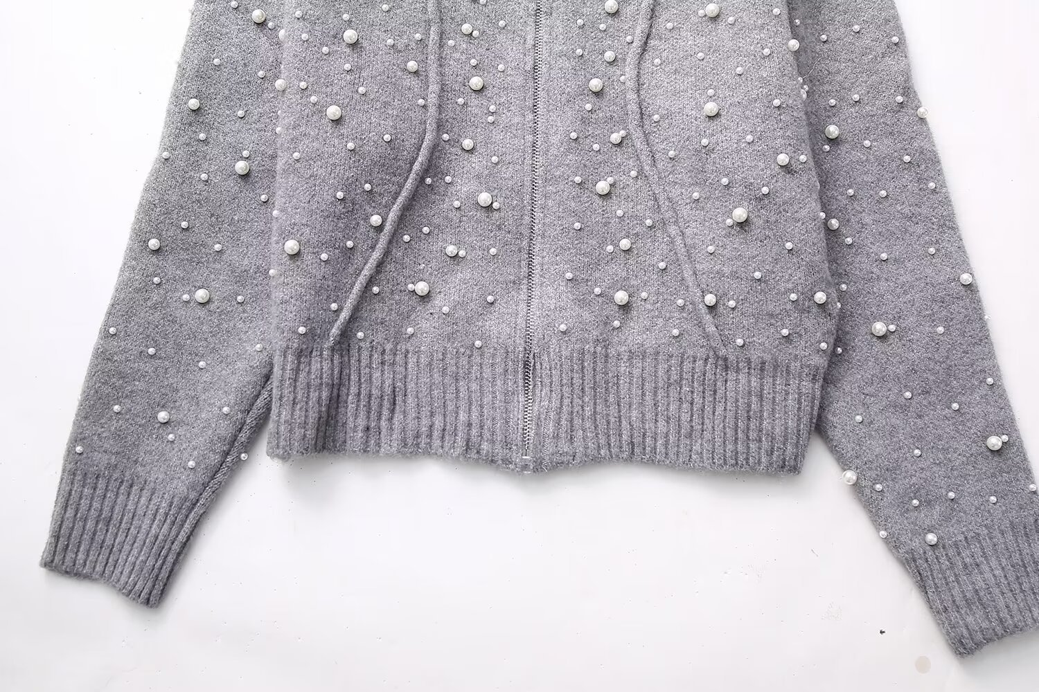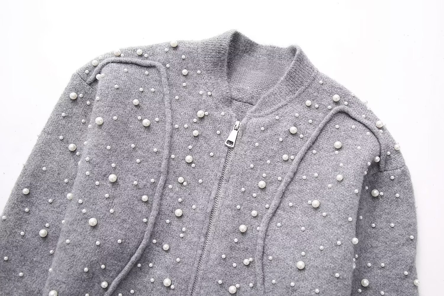 | nameOriginal | European and American cross-border women's clothing wholesale women's fashion all-match solid color stand collar long sleeve pearl knitted bomber jacket |