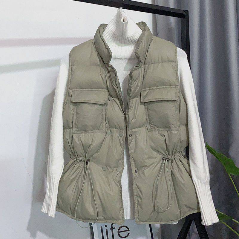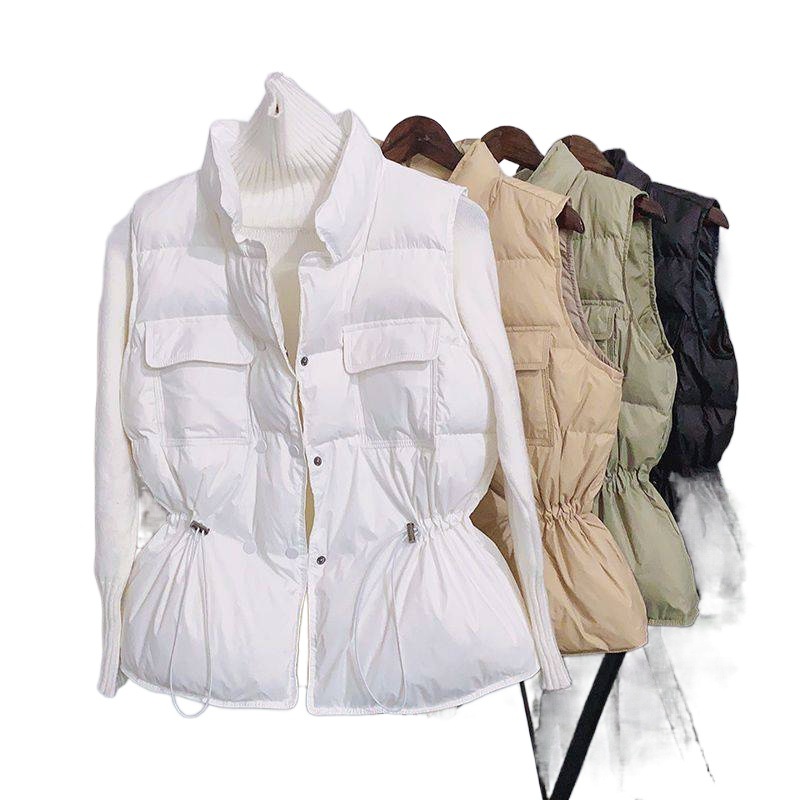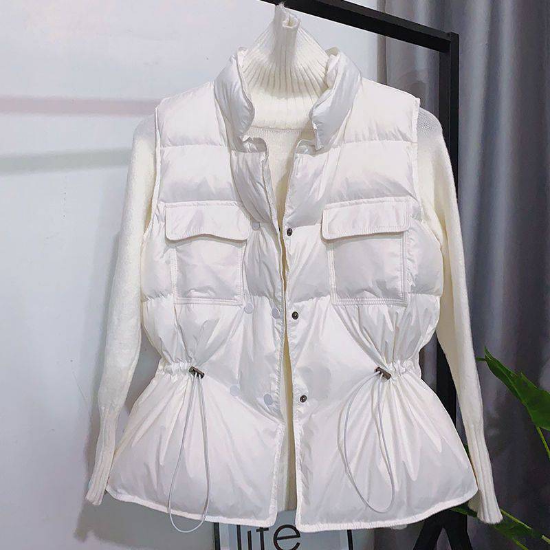 Down Vest Women’s outer wear 2023 Winter New Fashion stand collar waist tight light down jacket vest coat for women