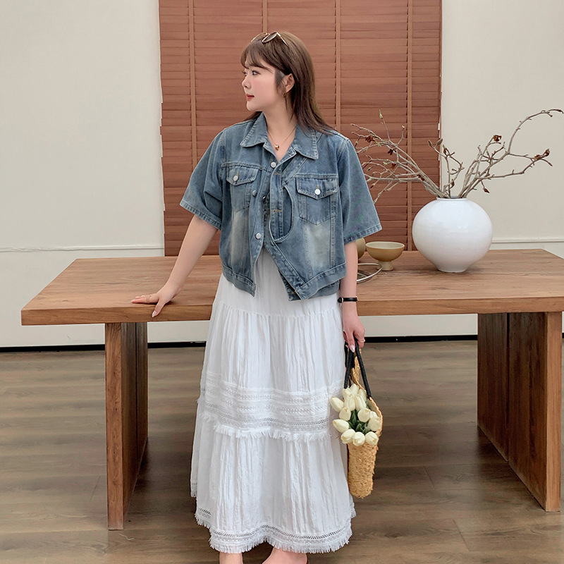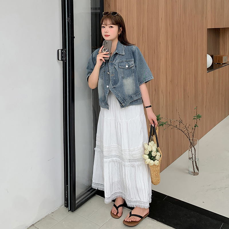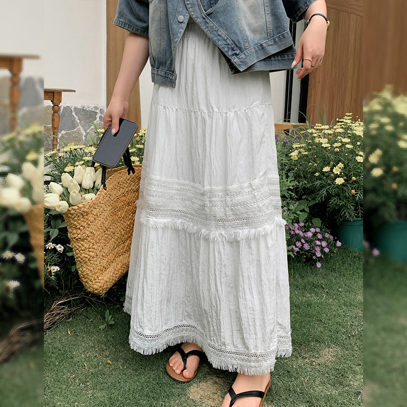 | nameOriginal | Double day 2024 spring new fat sister large size women's clothing wholesale French hollow lace tassel skirt L183 |