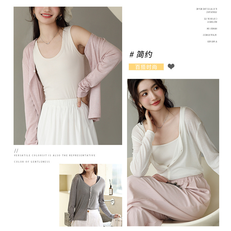 | nameOriginal | Lysel Tencel acetate cardigan for women spring and summer new thin outer wear air conditioning shirt button sun protection long sleeve T-shirt |