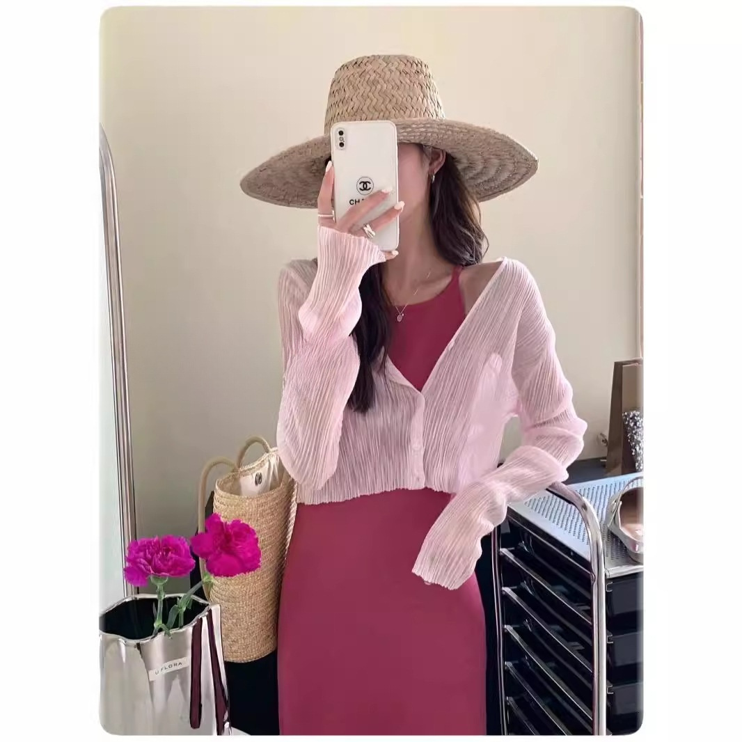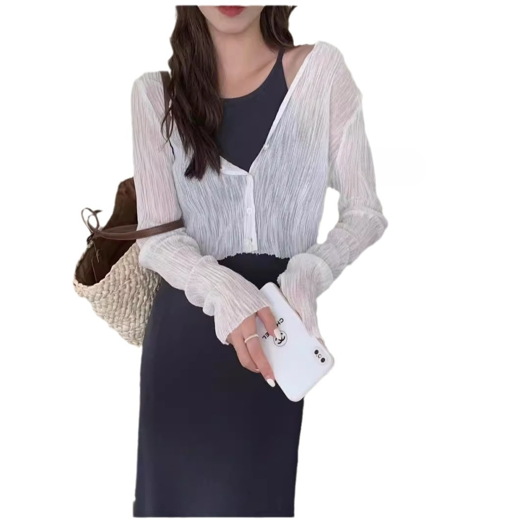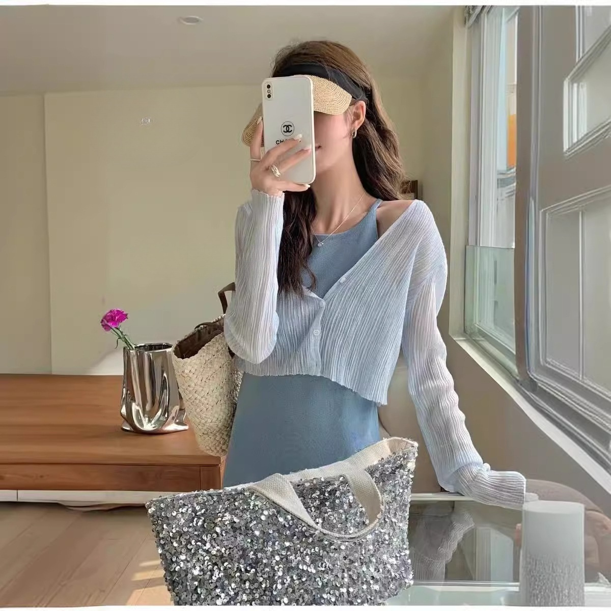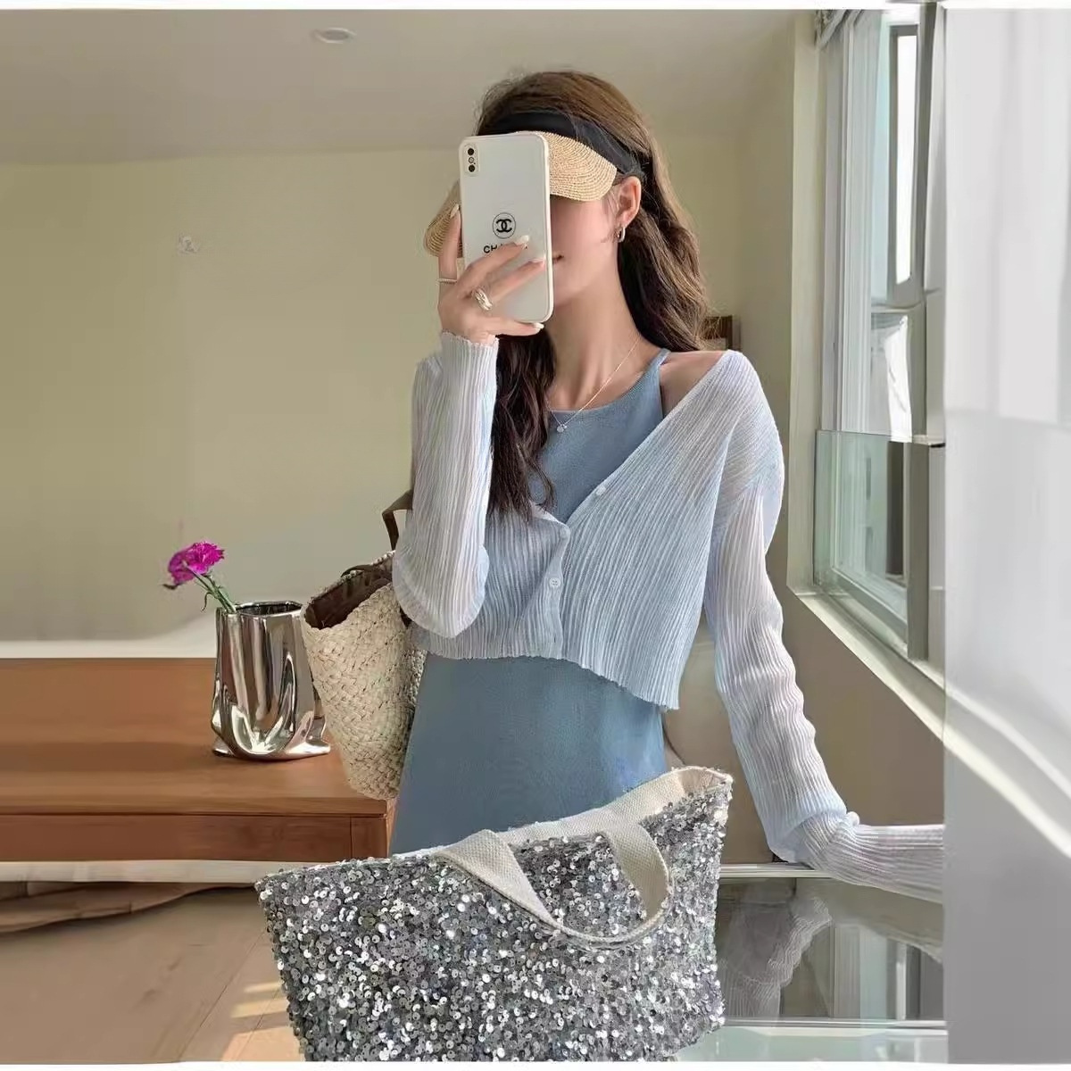 | nameOriginal | Blue Ice Silk Short Sunscreen Knitted Cardigan Women's 2024 Summer V-neck Air-conditioning Shirt Thin Shawl Shirt |