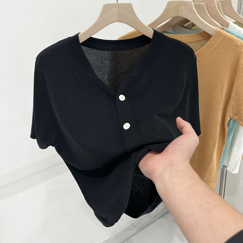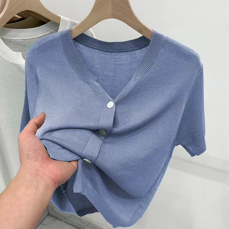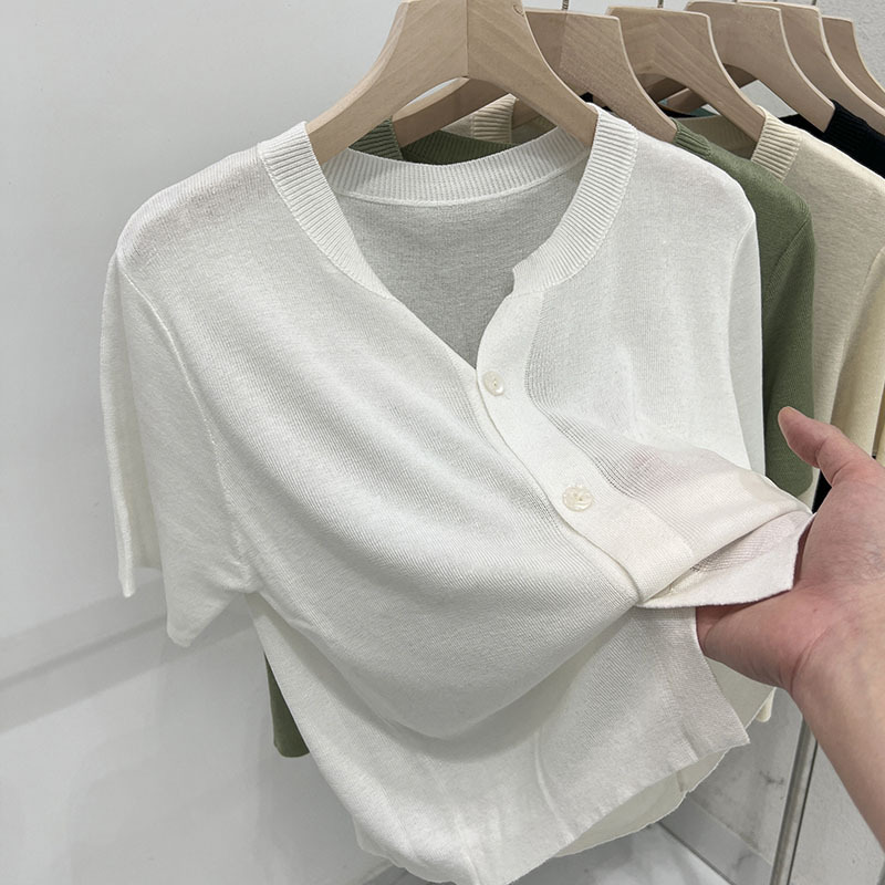| nameOriginal | Korean-style White Ice Silk Thin Knitted Shoulder Short-sleeved Cardigan Summer Loose Outer Sun-protective Shirt Short T-shirt Top for Women |